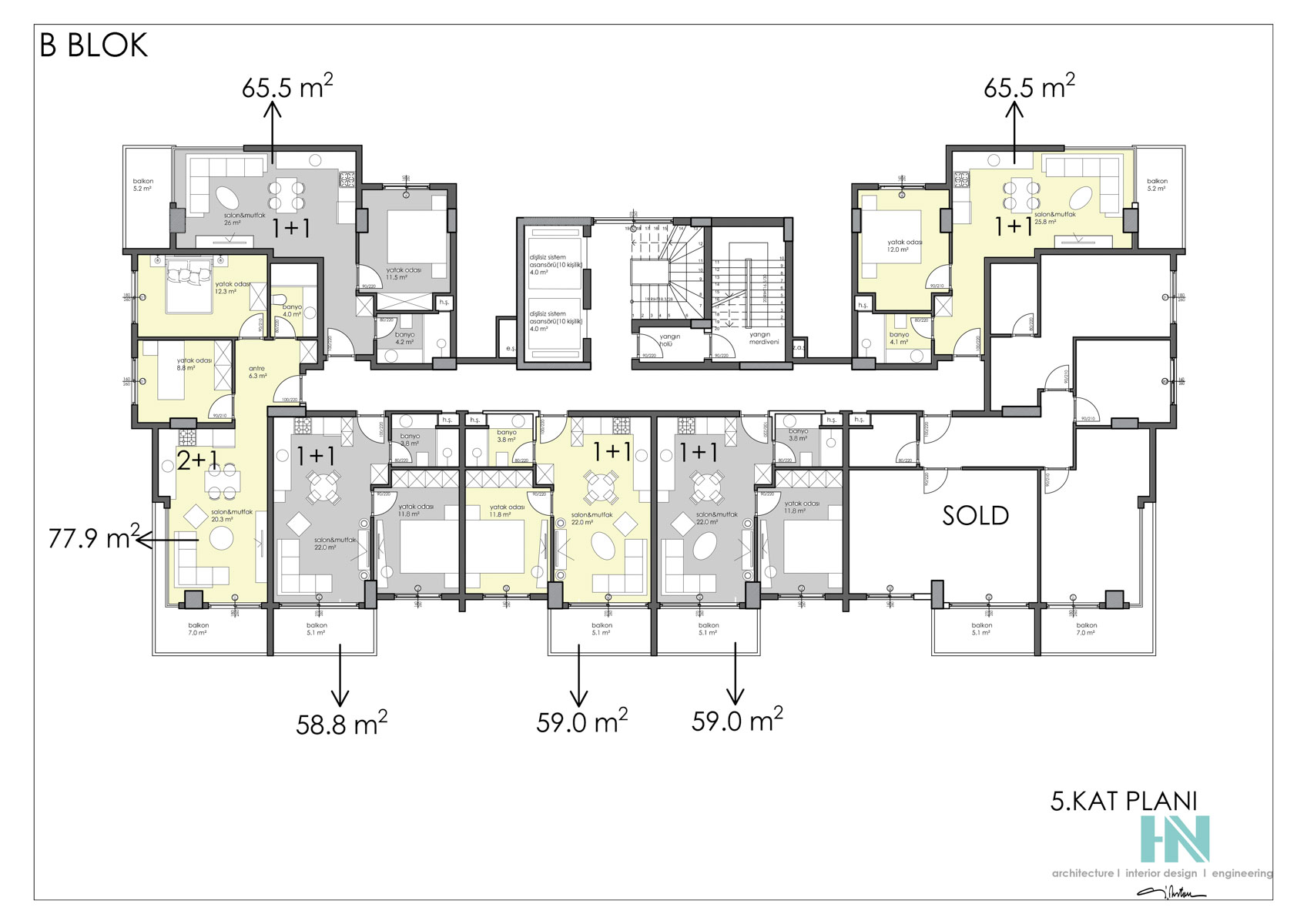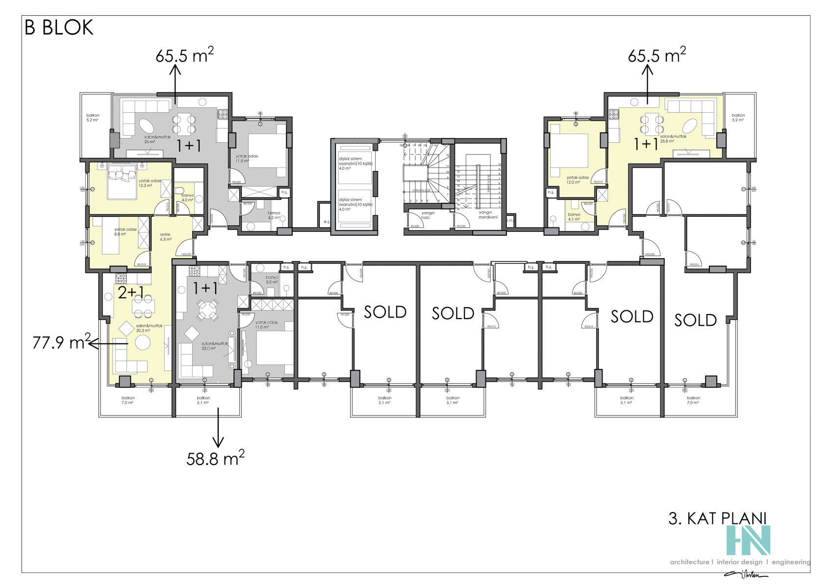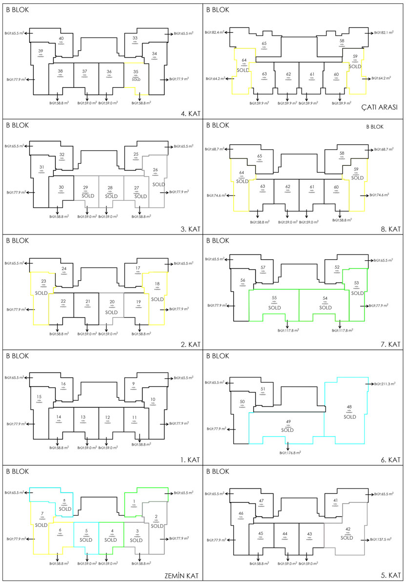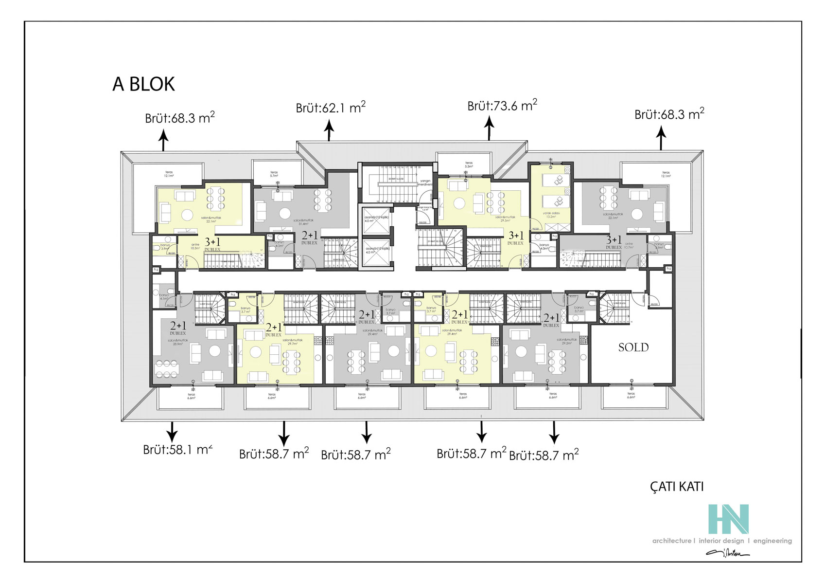 In this complex where luxury and comfort meet, swimming pools, spa area, gym, cinema, children's playground and many other facilities will be at your service. The complex, built on an area of 4237 m2, consists of 137 flats with 1+1, 2+1, 3+1 and 4+1 layouts in 2 blocks. Since the complex is located on a high part of the city, it offers the home owners the opportunity to enjoy the city and sea view. All apartments will be delivered with built-in kitchens, sanitary fittings and cabinets in the bathrooms.