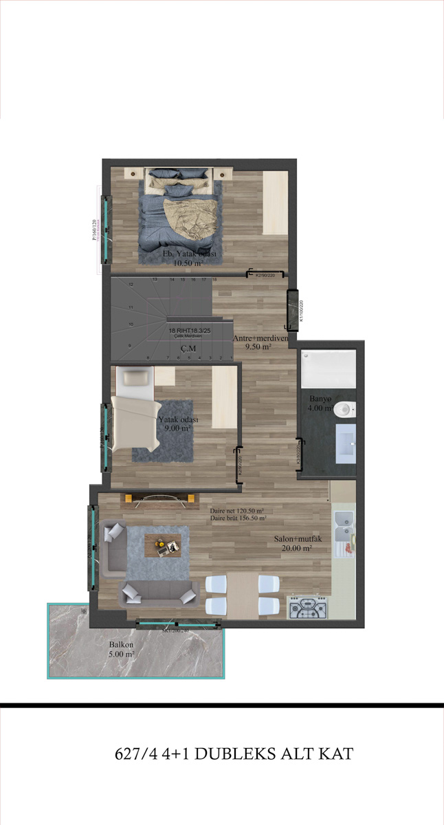A total of 16 apartments, including 1+1, 2+1 and 3+1 and 4+1 penthouses, are offered for sale in a 5-storey block located on an area of 1130 square meters. The apartments are quite spacious compared to those in this part of the city.