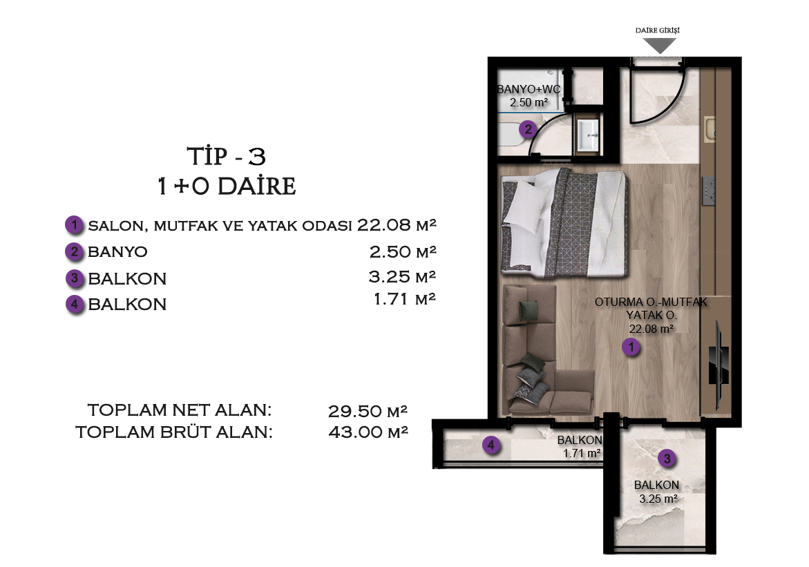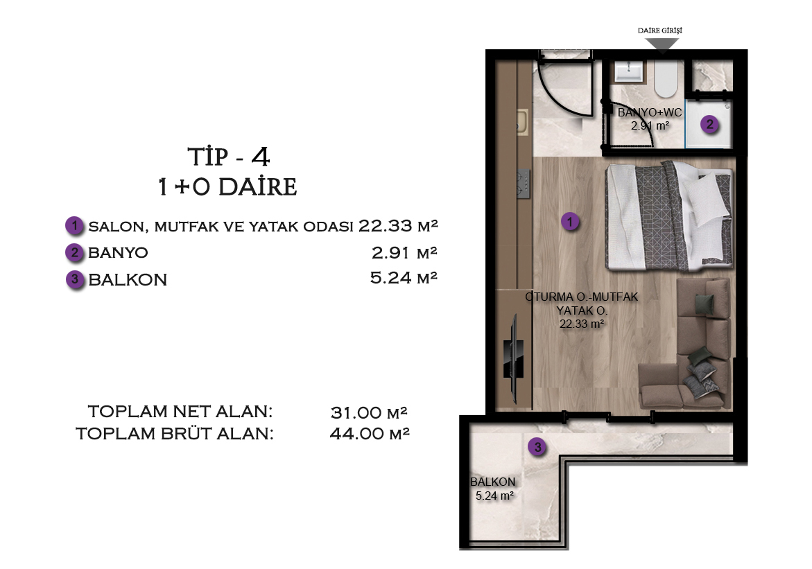 Number of Rooms 1+1, Studio (1+0)