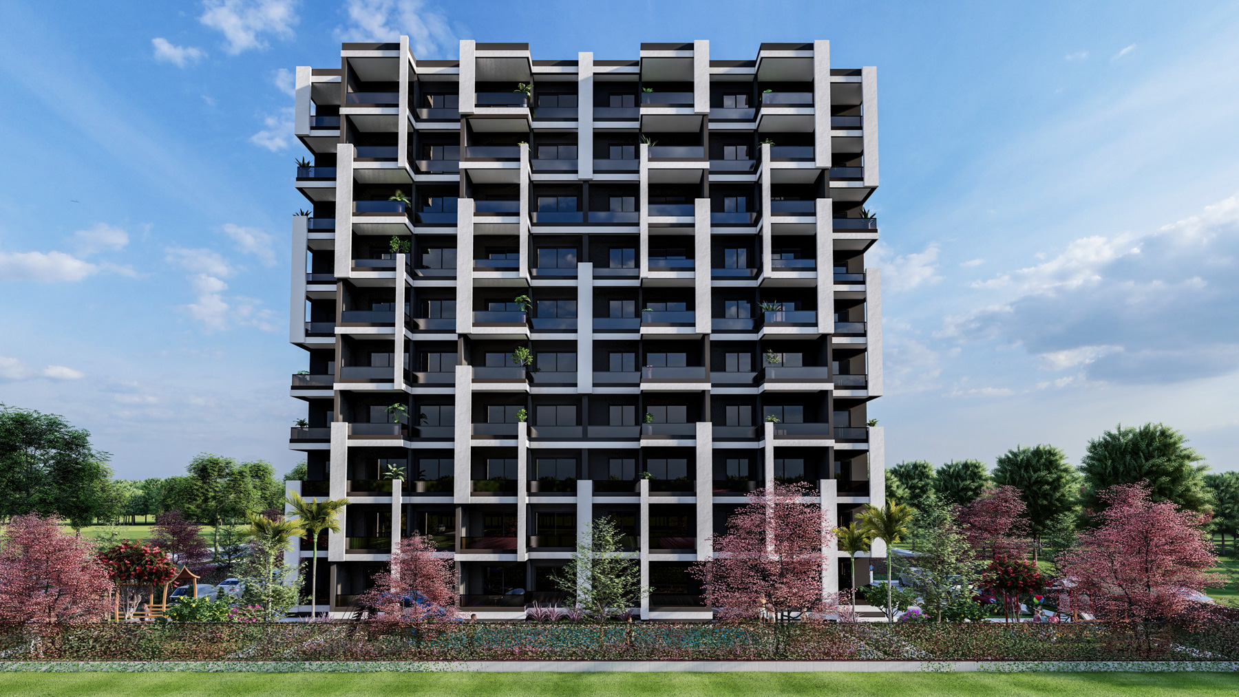 The construction will be completed in October 2024 and all apartments will be delivered with sanitary fittings and bathroom cabinets, built-in kitchen cabinets with granite countertops and finishing touches.