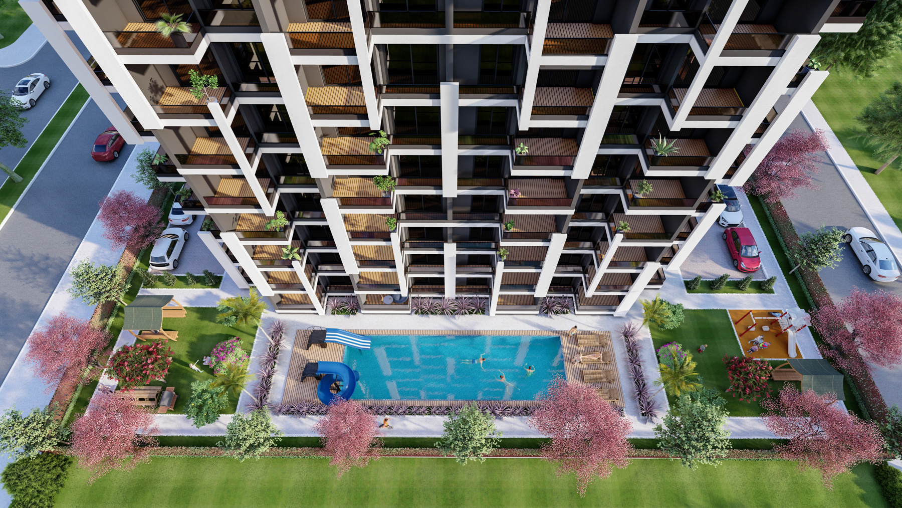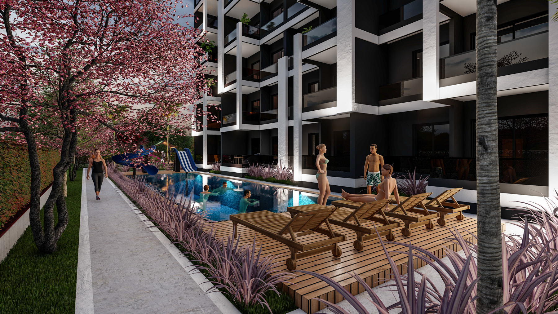 • In a complex with swimming pool