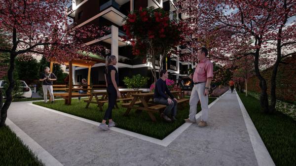 Equipped with an outdoor pool, Turkish bath, sauna, fitness, playground, barbecue area, outdoor car park, etc., 800 m from the sea, this modern facility has an 11-storey block with 6 apartments of 1+0, 2 apartmens of 1+1 on each floor.