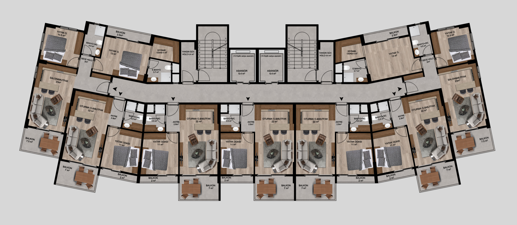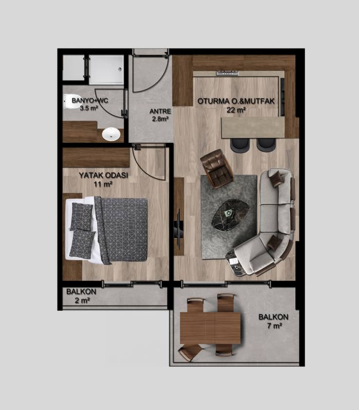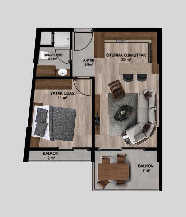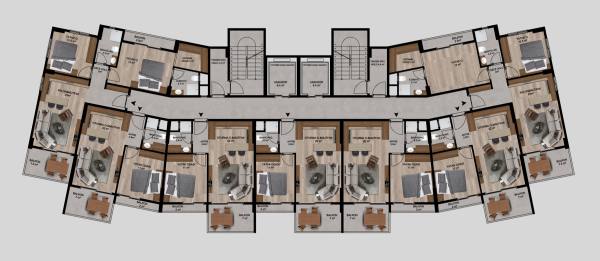 The residential complex that is 1200 m from the sea, consists of a 12-storey block and has its own rich social facilities that meet all the requirements of modern life. The facility has an outdoor swimming pool, Turkish bath, sauna, fitness, table tennis, playground, barbecue and outdoor parking.