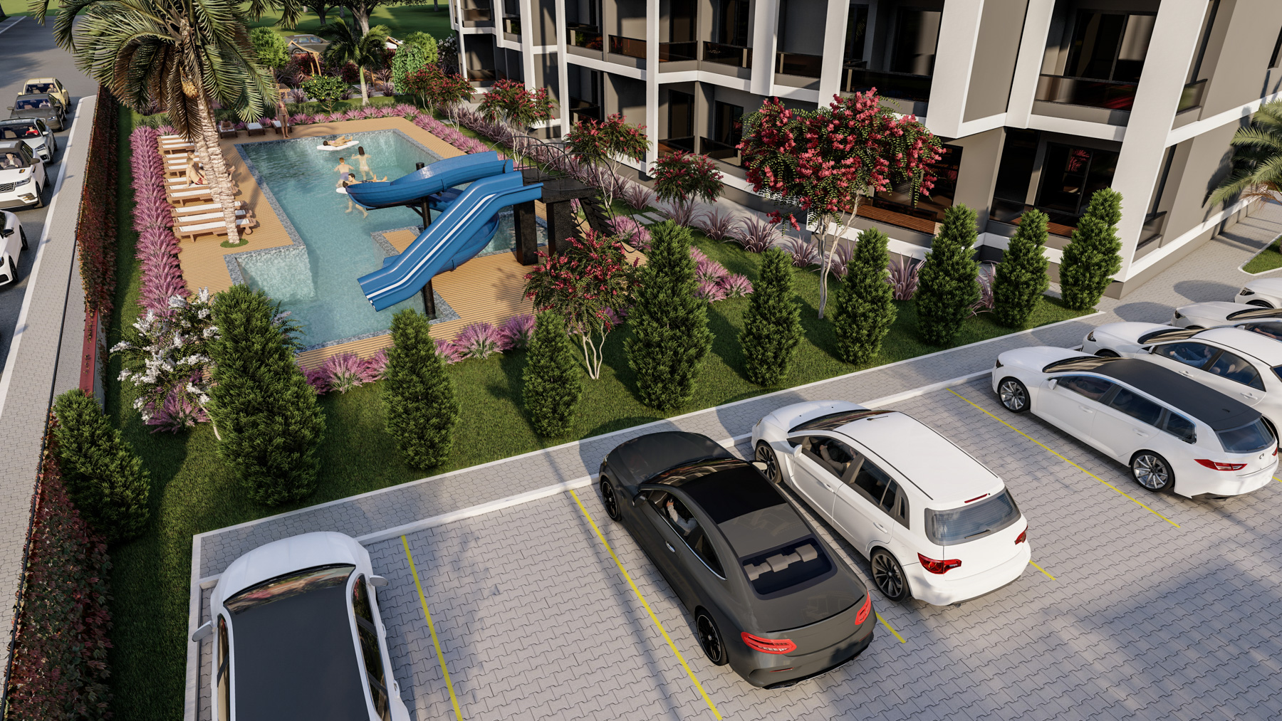 • In a complex with swimming pool