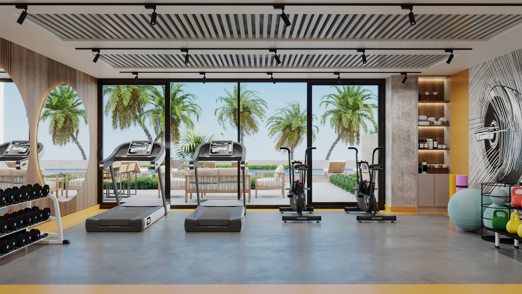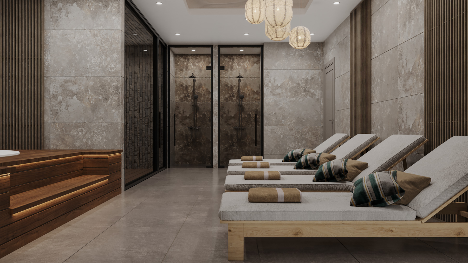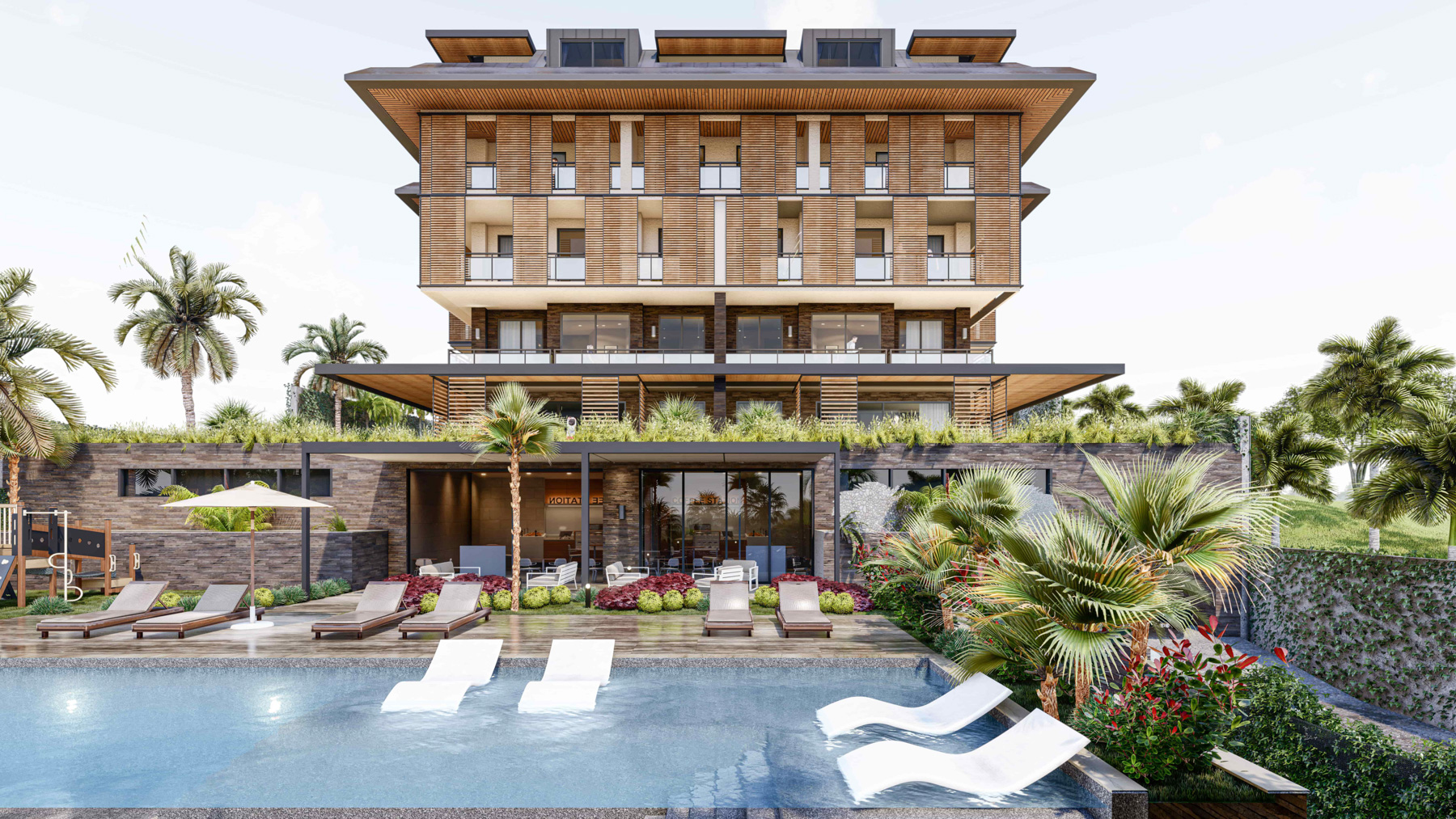 The residential complex consists of 1 block with its own social facilities on a land of 3.965 square meters, 1500 m from the sea. The common areas include an outdoor swimming pool, jacuzzi and sauna, gym, lobby, cafe, car park, children's playroom, billiards and generator. The territory of the complex is completely private and protected.
