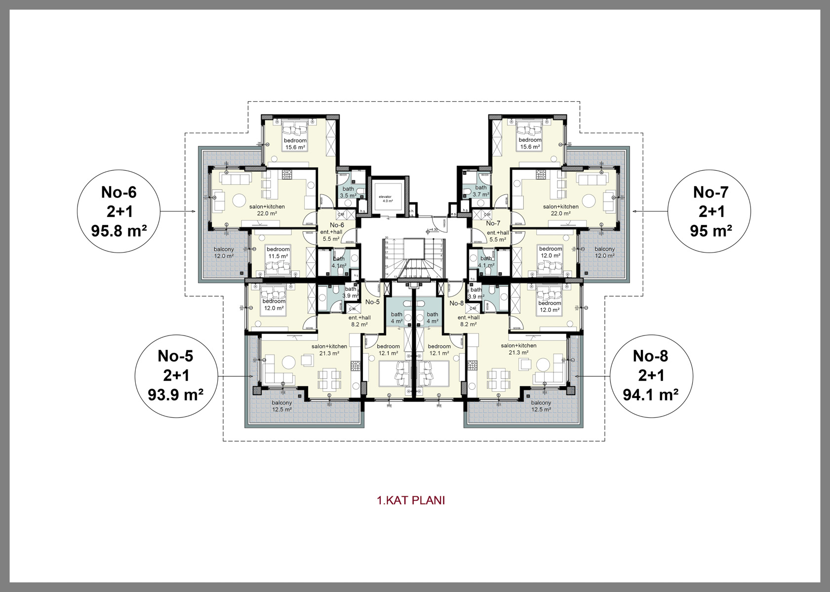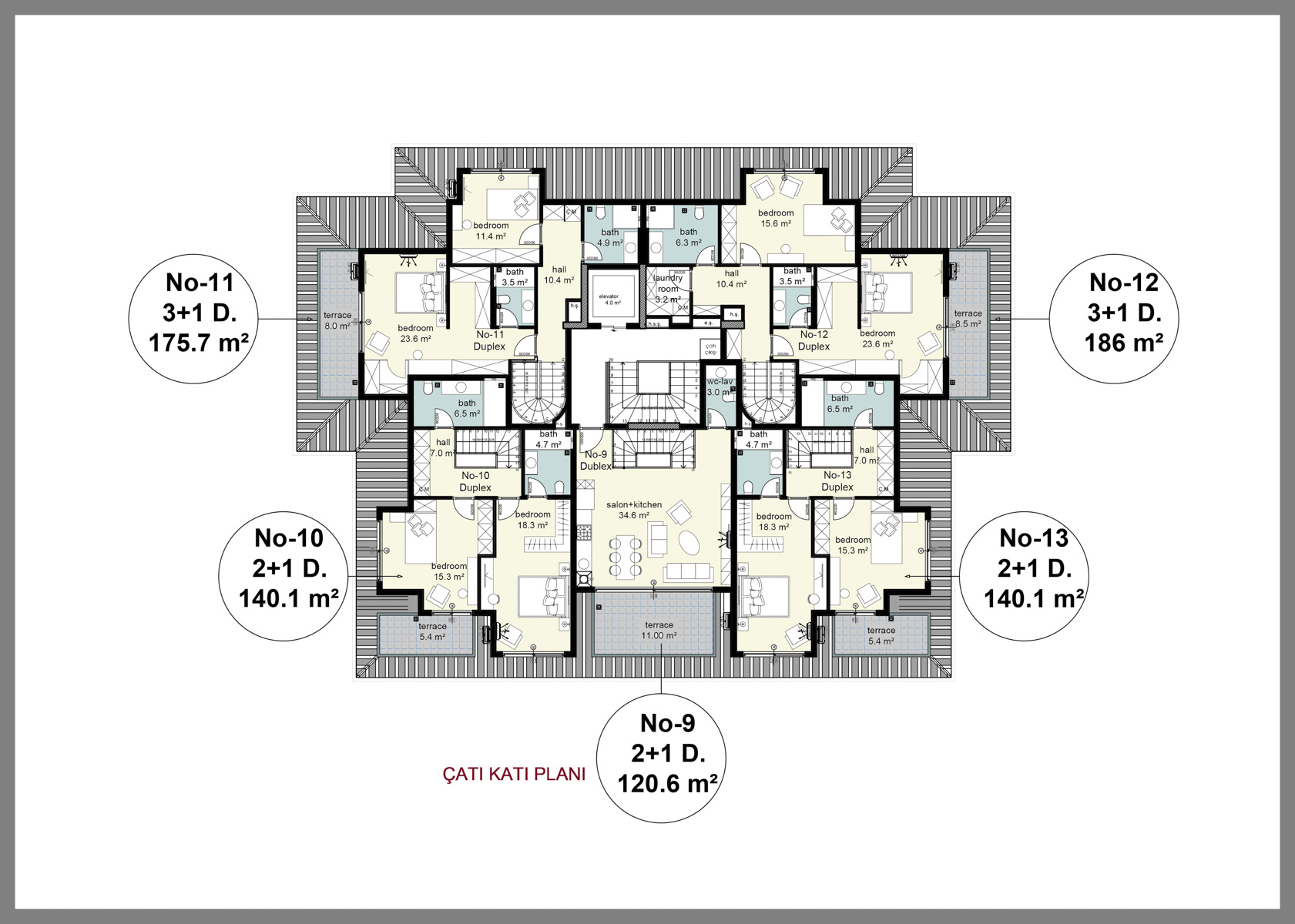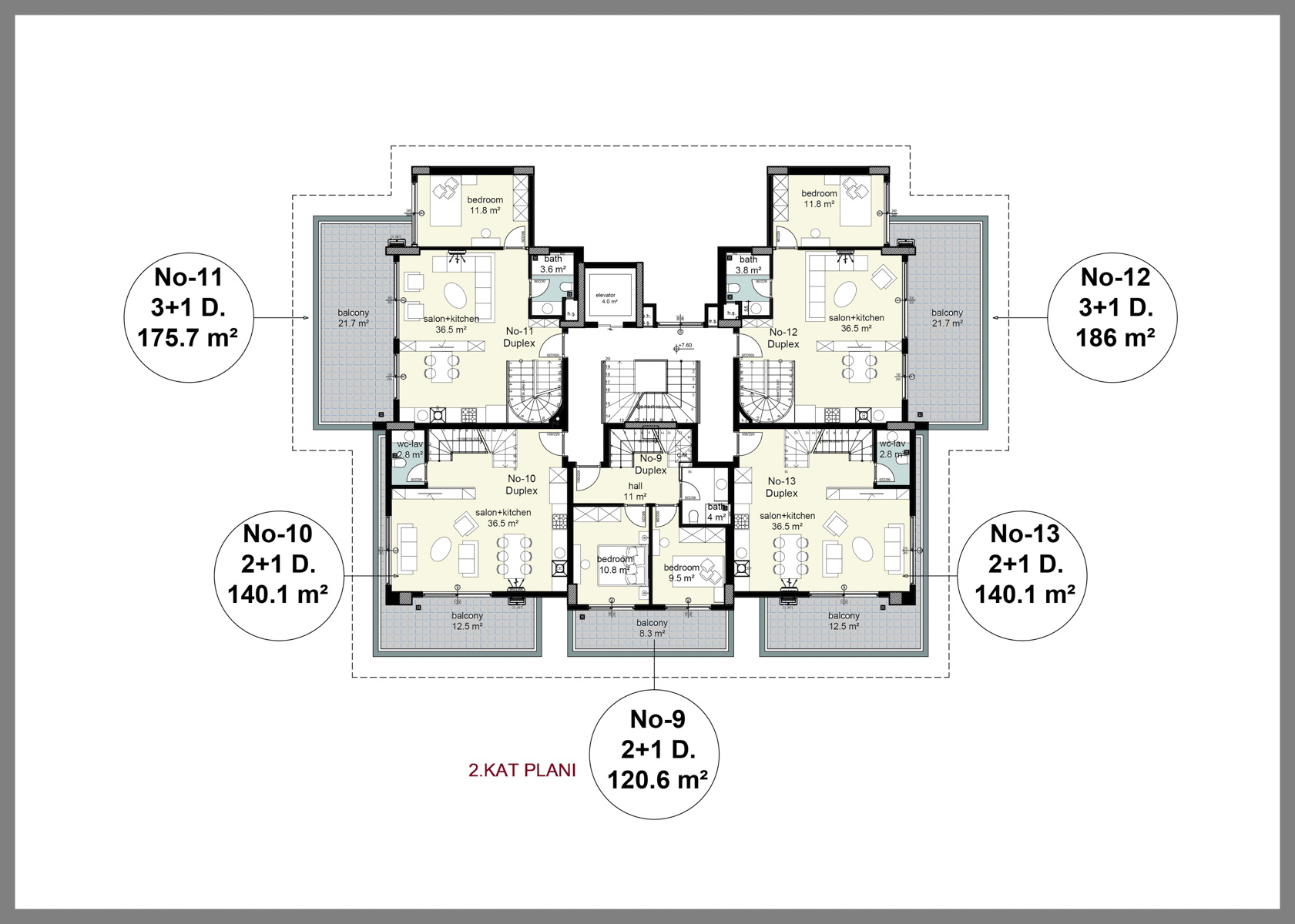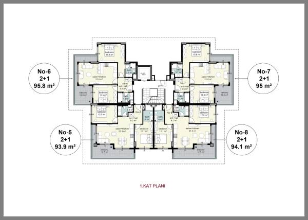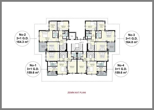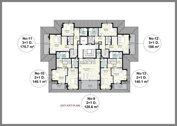 The complex has 2+1 and 3+1 garden duplexes as well as 2+1 and 3+1 upper duplexes. The apartments will be delivered finished, with fully fitted bathrooms and built-in kitchen sets. The apartments will have Bosch brand air conditioners in every room, as well as 7 Bosch brand white goods, underfloor heating and water heater in the bathrooms, steel door and video intercom at the entrance.