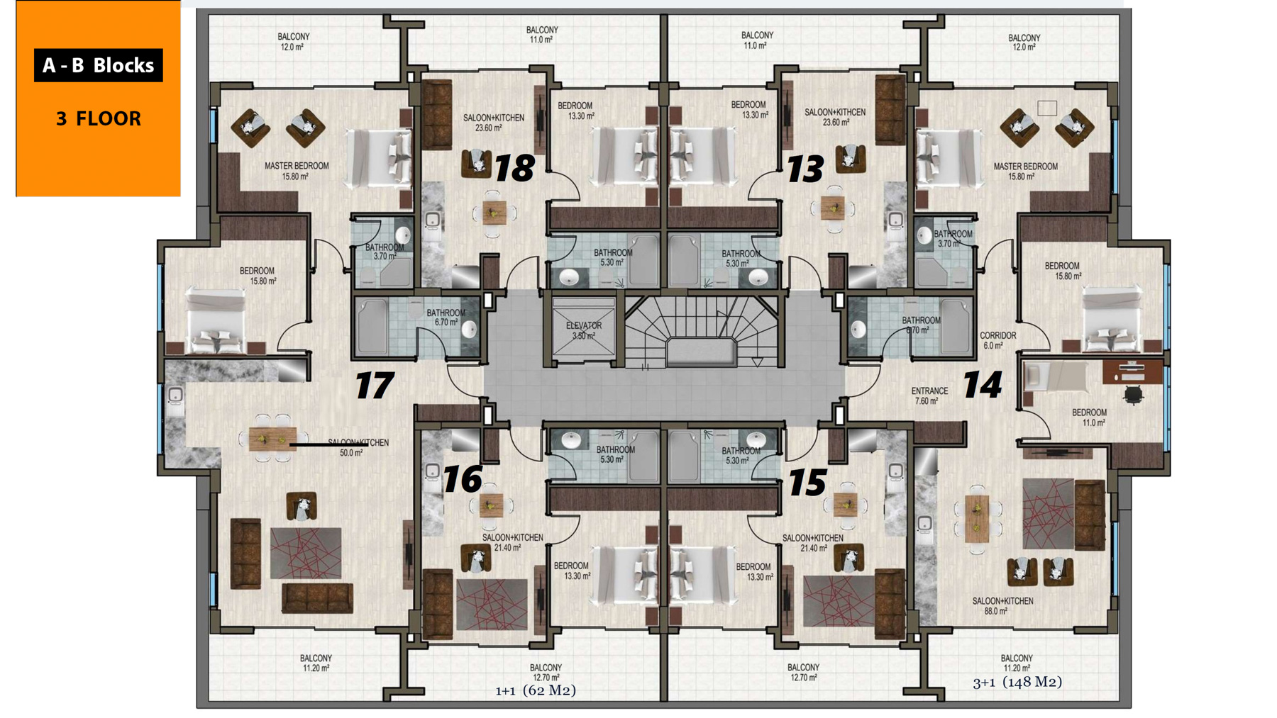 Number of Rooms 1+1, 2+1, 3+1, 4+1