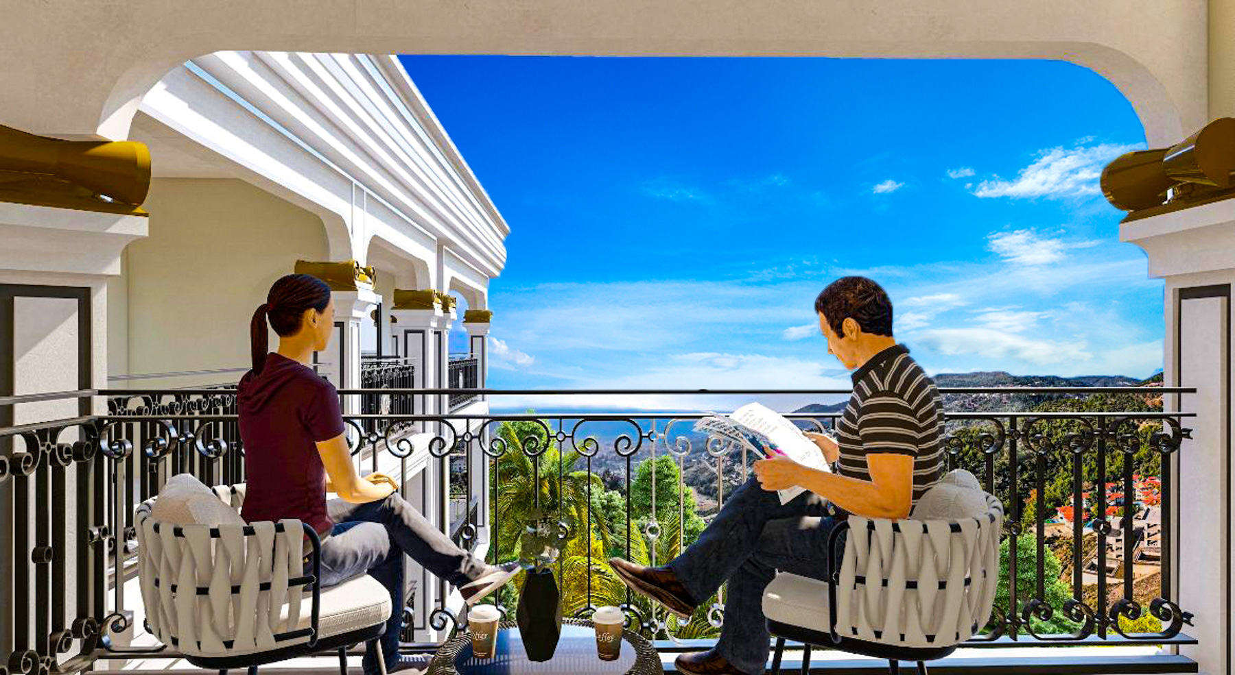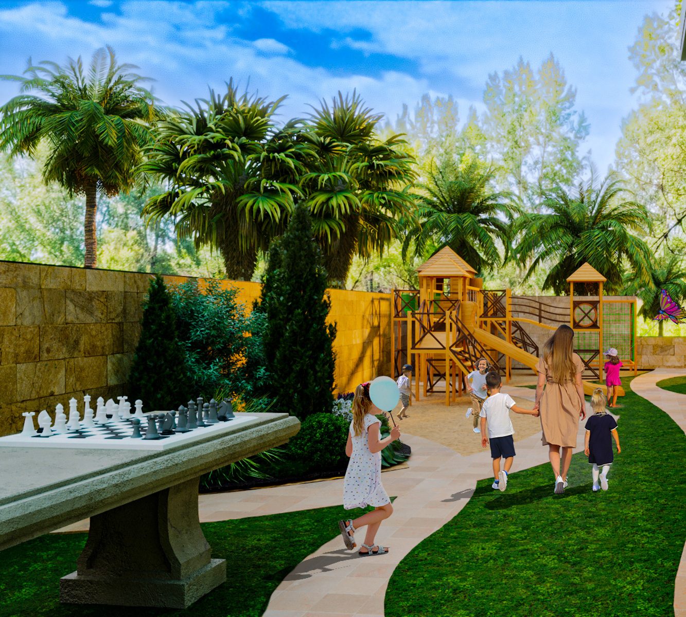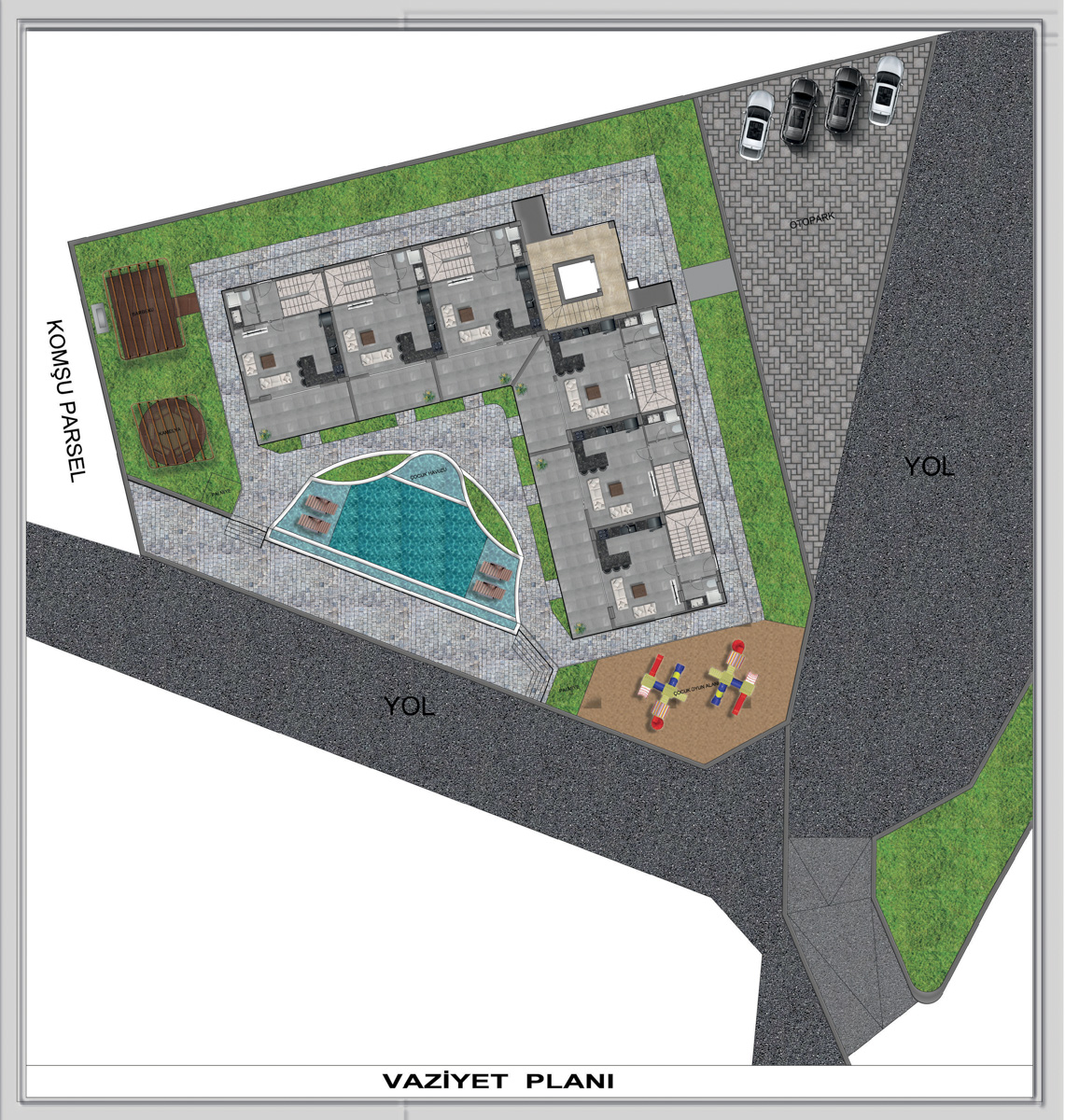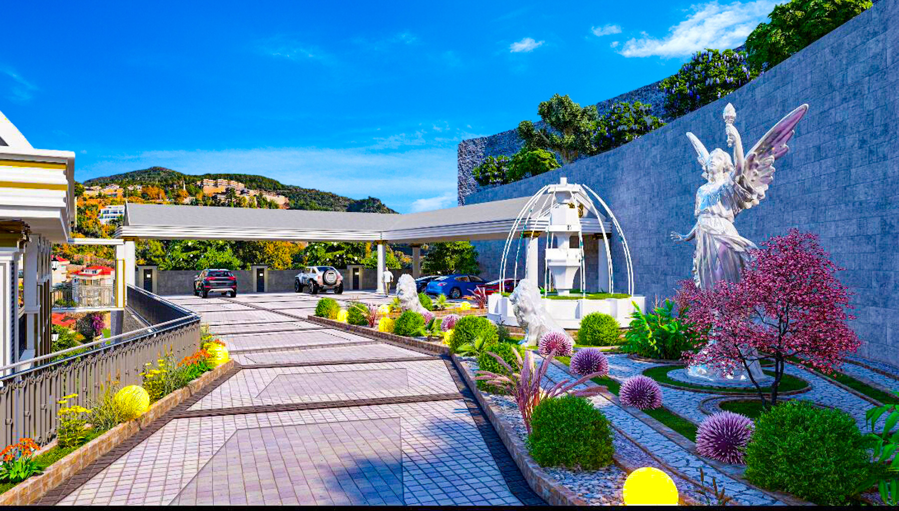 The complex provides every opportunity for a comfortable life and a pleasant vacation with its communal area, including an outdoor swimming pool with panoramic views, landscaped garden, fitness, sauna, relaxation room and barbecue area.