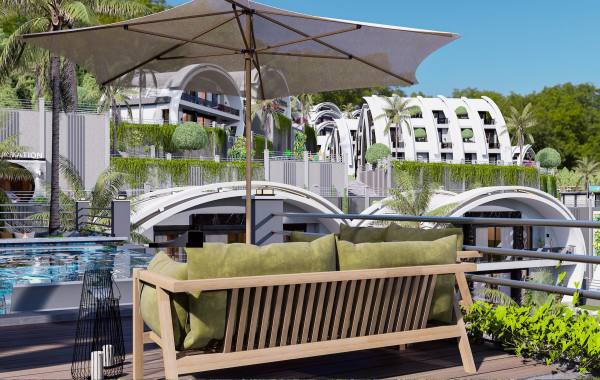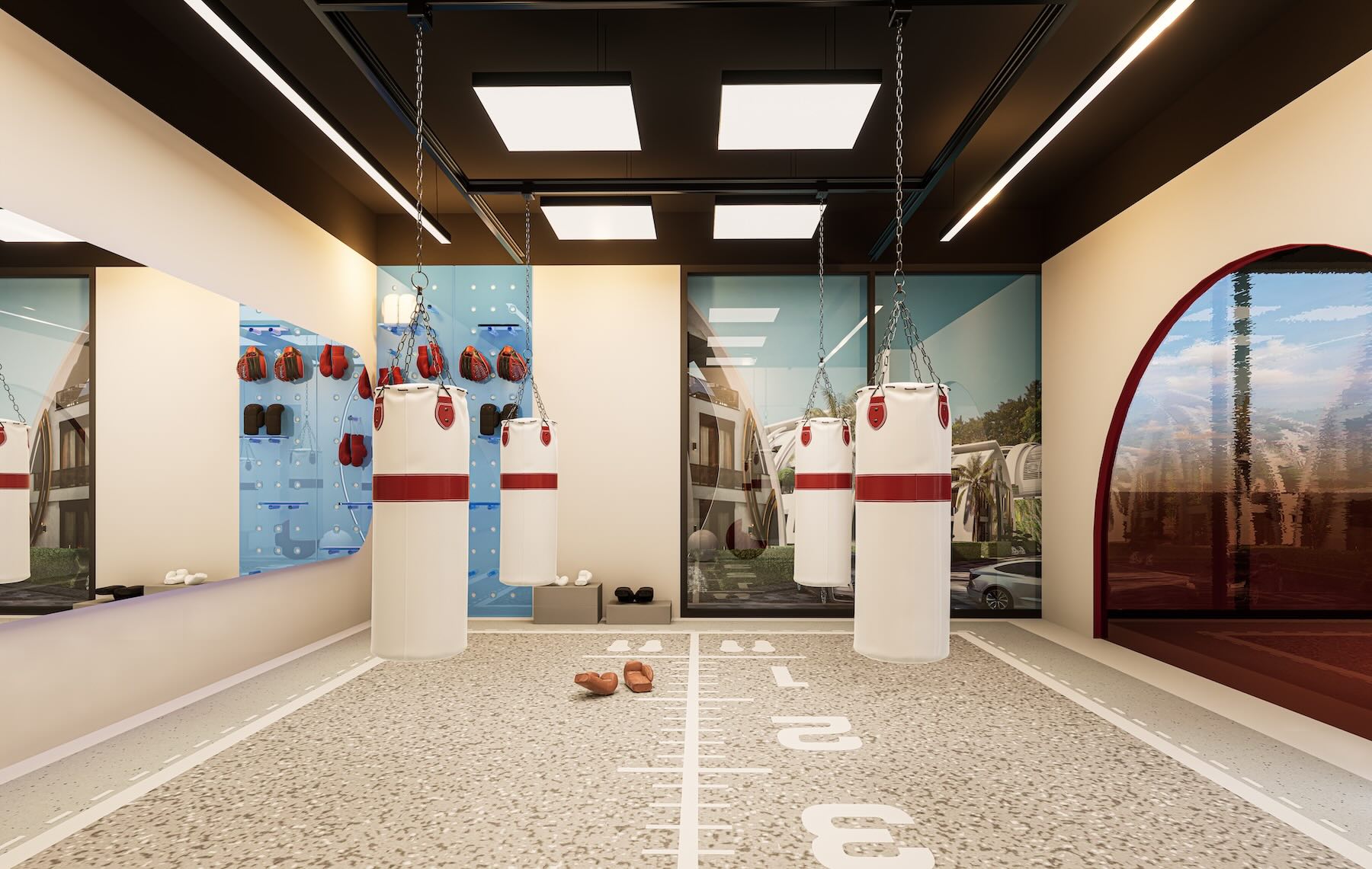 The luxurious social facilities of the complex provide all conditions for comfortable living and vacation: 3 outdoor swimming pools, Jacuzzi, indoor winter pool, hammam, sauna, steam room and massage rooms. For entertainment and games there is a kids club, Playstation room, playground, billiards, bowling, table tennis, outdoor cinema and movie theater, fitness center, boxing room, yoga room and outdoor yoga area, squash, basketball court and outdoor fitness equipment. There is also a meeting room, restaurant, Starbucks café, shop, hairdressing salon and laundry facilities. A shuttle service to the beach is available all year round.