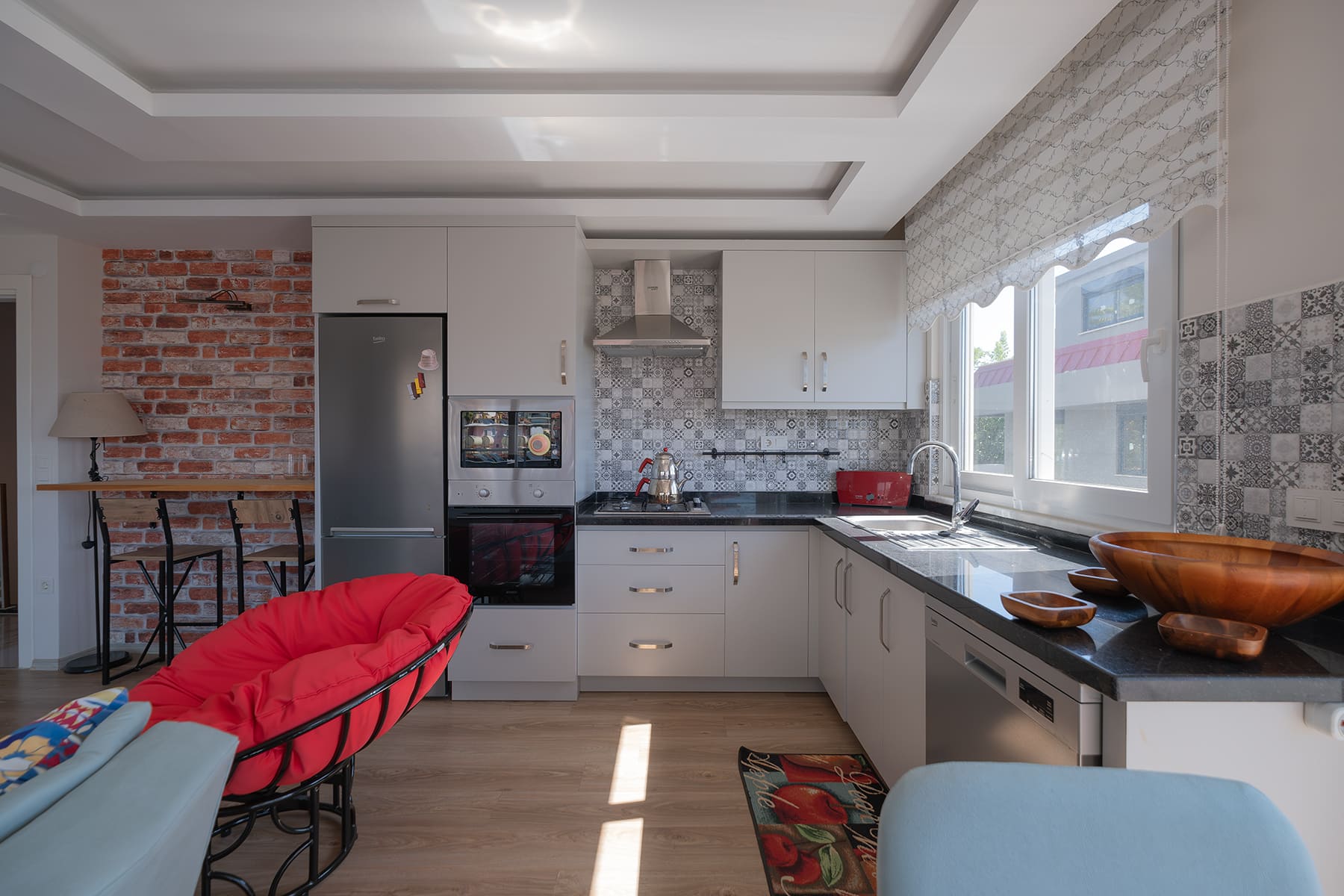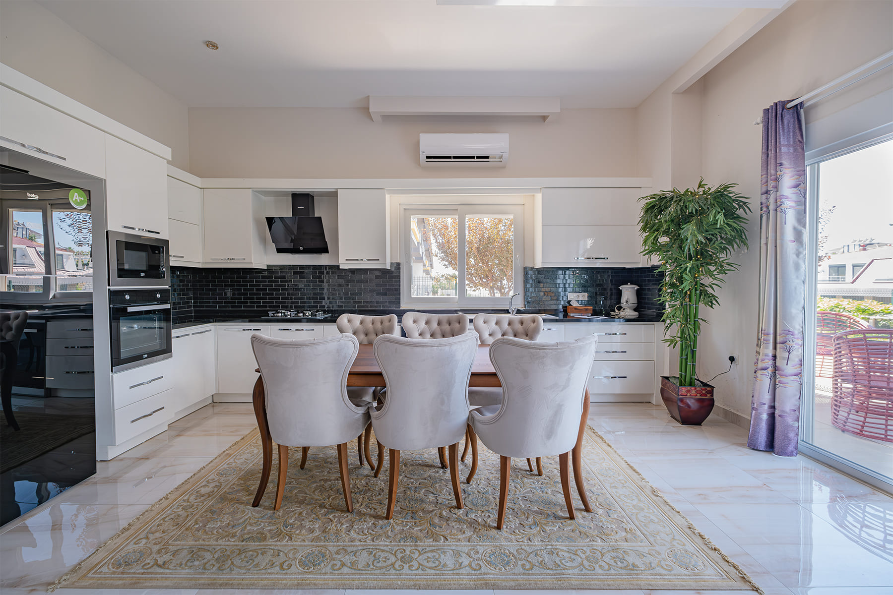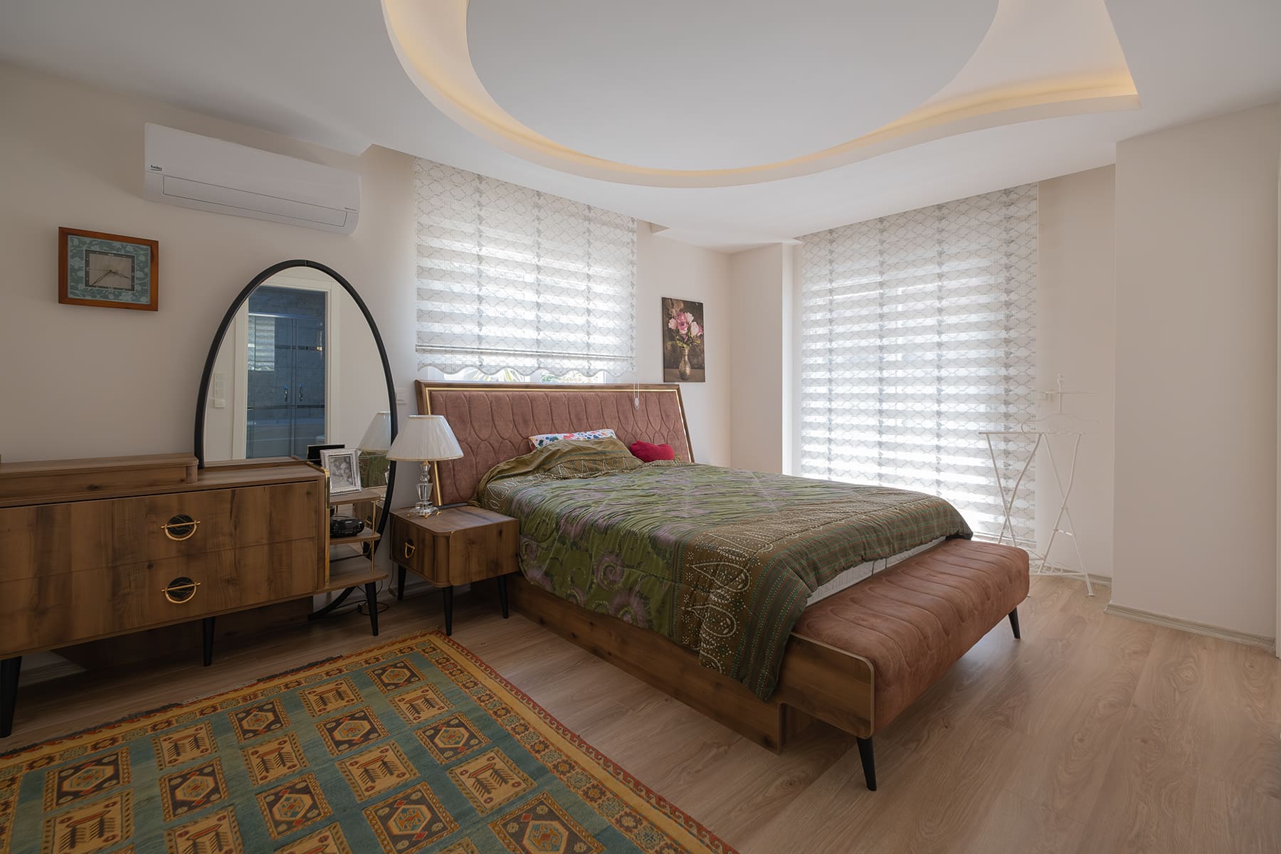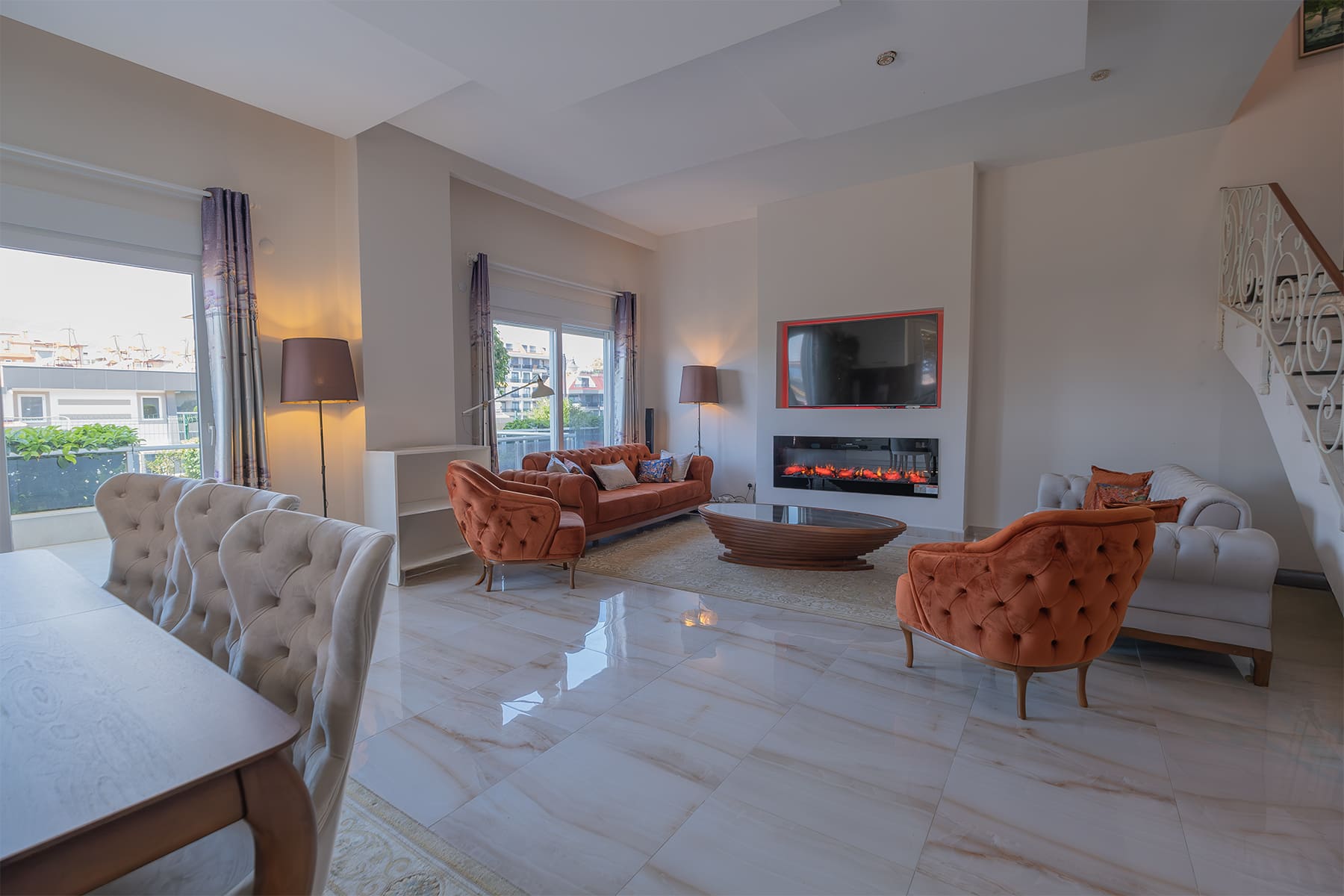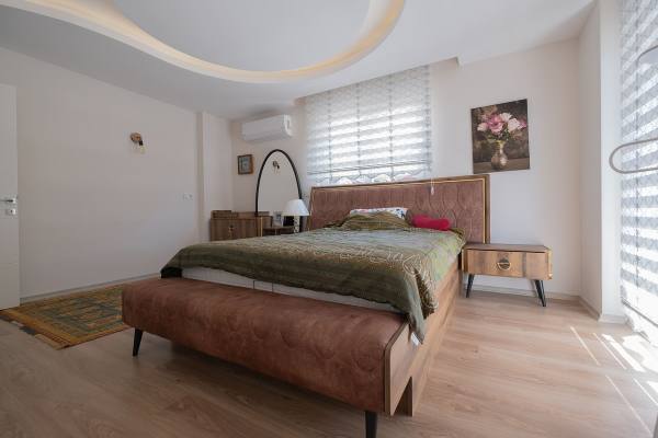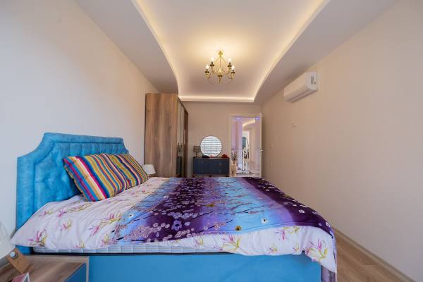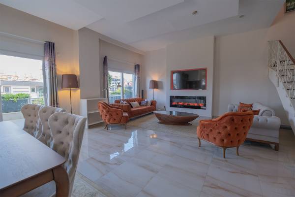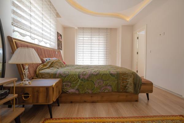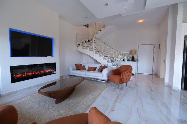 This 3+2 garden duplex apartment, located in a complex equipped with social facilities in the Kestel region of Alanya, is offered for sale fully furnished, including white goods and air conditioners. The apartment features 3 bedrooms, 2 living rooms, and 2 open-plan kitchens. Additionally, there are a total of 3 bathrooms, one of which is an en-suite.