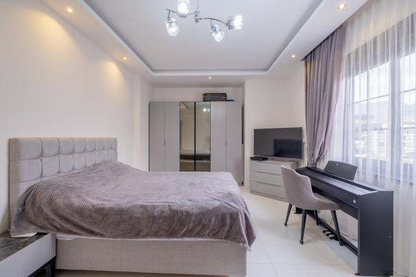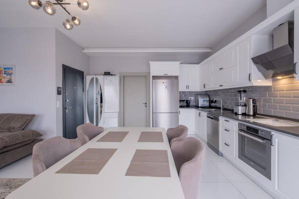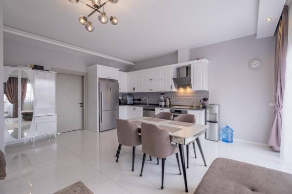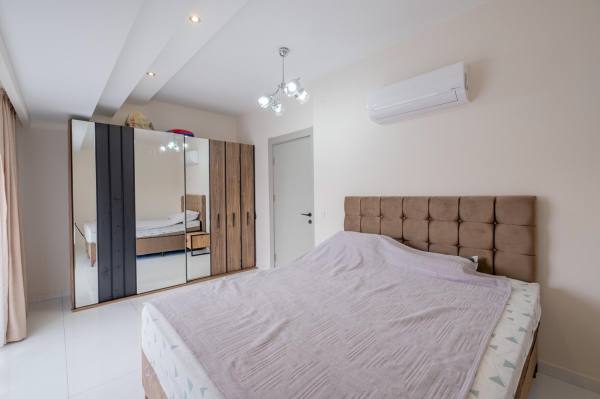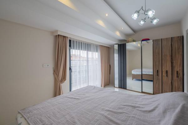 The apartment is fully furnished and equipped with necessary household appliances including air conditioning and TV. The South, East and West facing apartment has a very bright living room with a view of Alanya Castle thanks to its large windows.