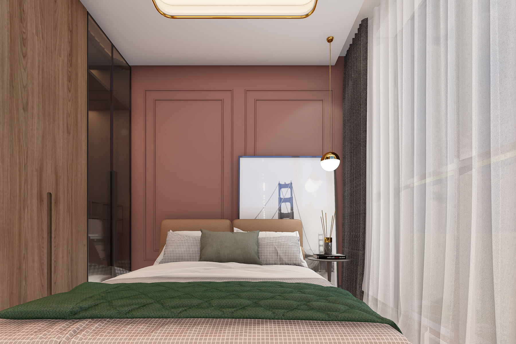 The residence is located in a peaceful and secure neighborhood, within walking distance to cafés, shopping malls, and entertainment venues.