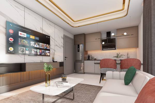 The apartment is located in a newly built residence in Mahmutlar, one of the most sought-after areas of Alanya, is for sale. Mahmutlar is a developing region that hosts many elite projects. The presence of Alanya's largest shopping mall nearby also adds value to the area.