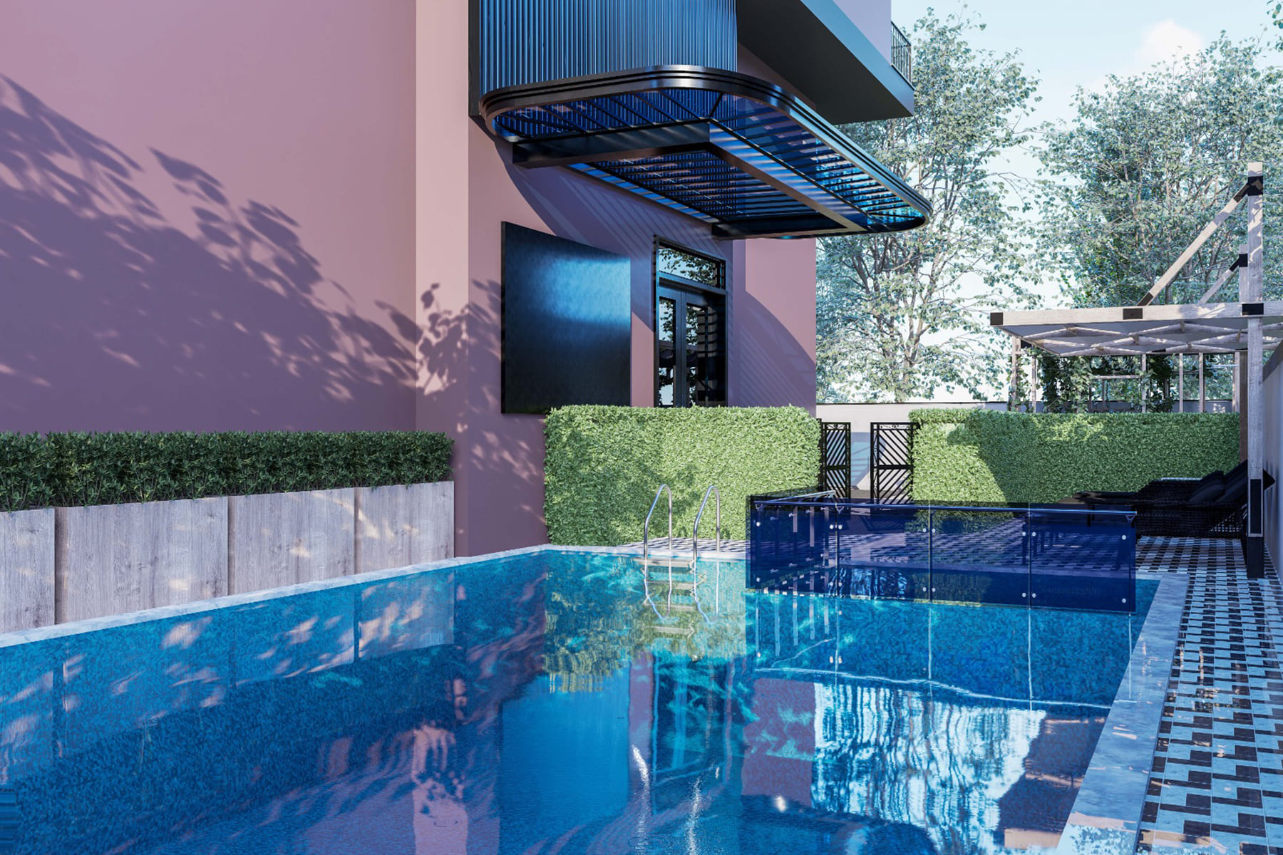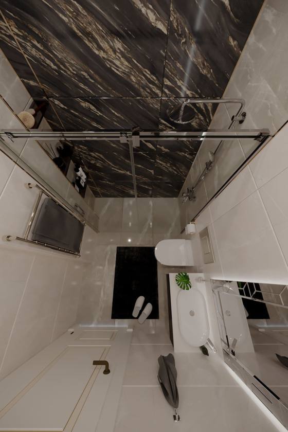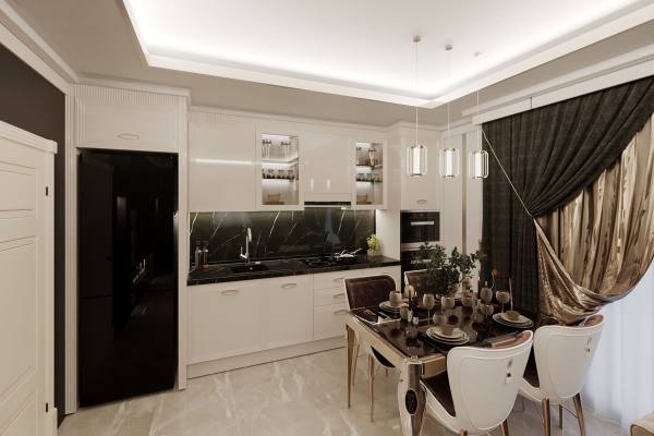 The land area is 1000 m², with one five-story block containing 30 apartments with layouts of 1+1 and 2+1. A major advantage is the 3-meter-high ceilings and panoramic windows in all rooms, as well as glass balconies. The apartments are equipped with water heaters and laminate flooring in the bedrooms. The apartments have spacious layouts and are decorated with high-quality materials.