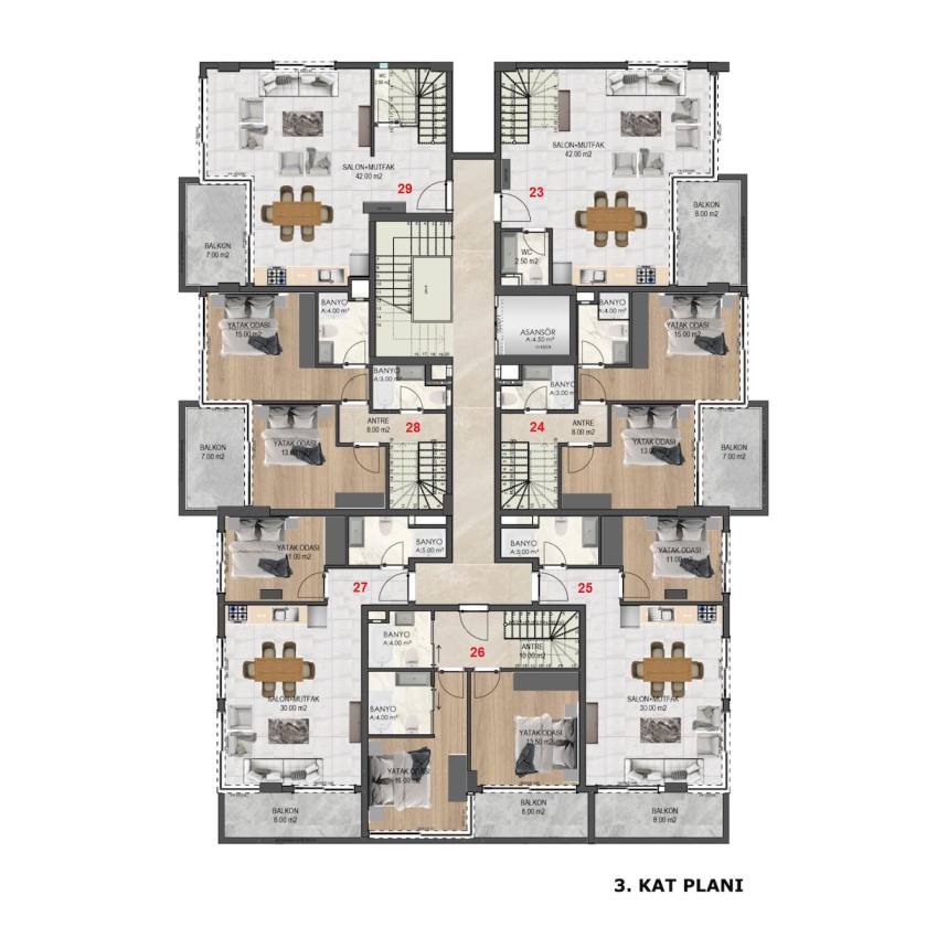 Dünyaca ünlü Kleopatra plajına sadece 600 metre uzaklıkta yeni bir konut kompleksi projesi.