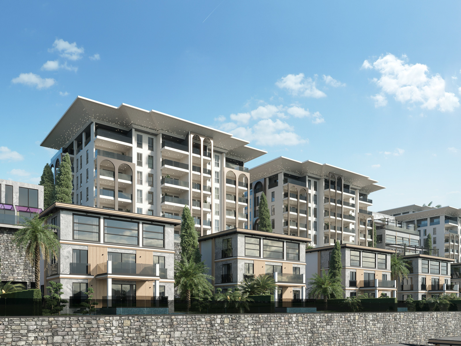Büyük ölçekli bir premium sınıf kompleksi. Kendi başına bir mini kasaba olarak tasarlanan bu yeni site, 38.913m2 alan üzerinde 5 katlı 7 küçük blok ve 40 villadan oluşmaktadır. Kompleksin 8000m2'lik alanında kurulan tesisler size konforlu ve keyifli yaşam sunacak imkanlarla donatılmıştır.