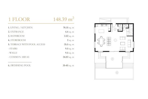 • Villaların cephe dekorasyonunda 80% oranında doğal bileşenlerden (mermer, kuvars) oluşan bir yapı malzemesi olan Flextone kullanılmaktadır.