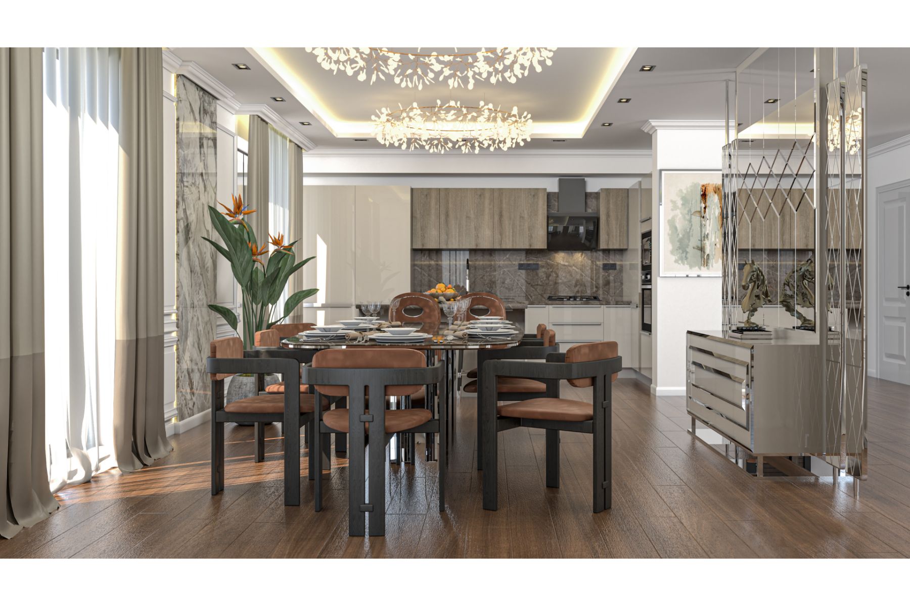 Daireler, ankastre mutfak seti ve eksiksiz banyolar ve yüksek kaliteli kaplamalar ile teslim edilecektir. Her evde İtalyan markası SMEG'in mutfak aletlerinin yanı sıra: