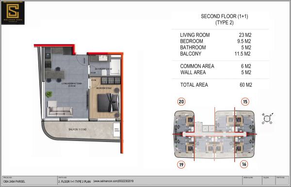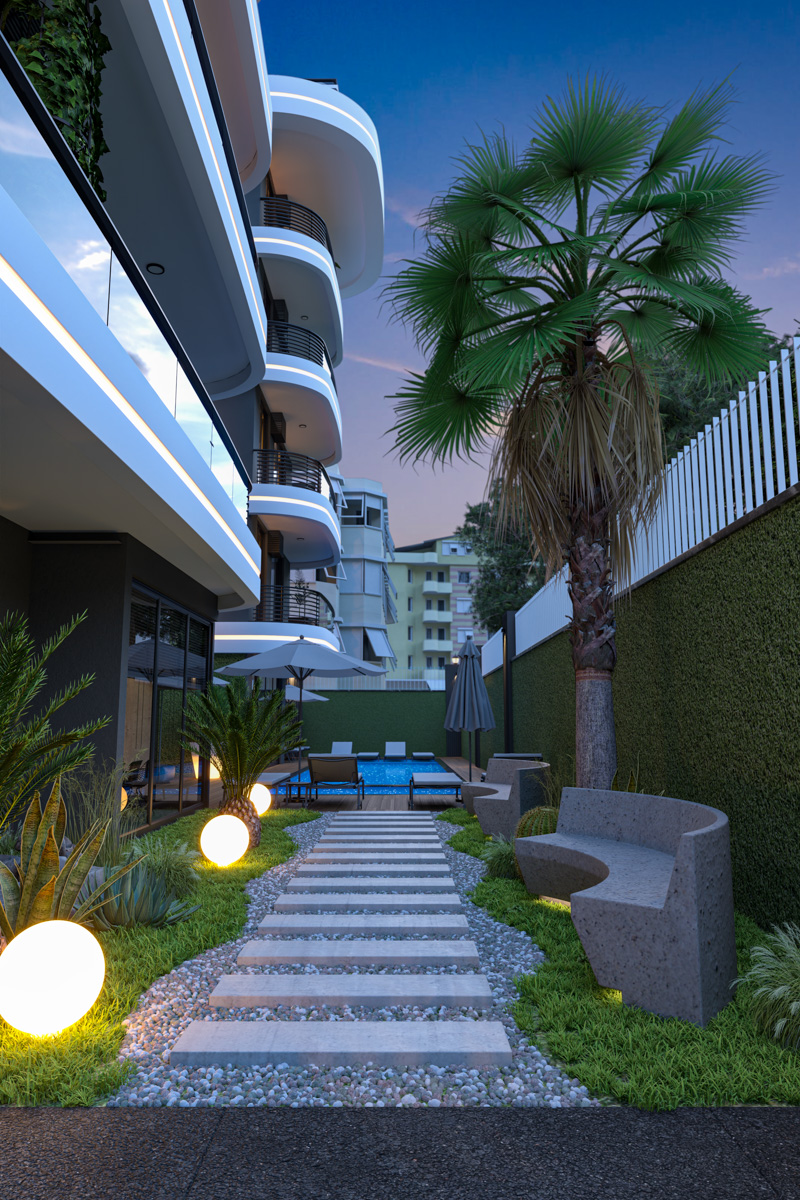 Oba'nın merkezindeki bu kompleks küçük olmasına rağmen Alanya'nın tarihi merkezine olan yakınlığı sayesinde şaşırtıcı bir şekilde elverişli bir konuma ve birçok imkana sahiptir. Hoş bir konaklama ve konforlu yaşam için hayal edebileceğiniz her şey yürüme mesafesindedir: hastaneler, kamu bankaları ve özel bankalar, restoranlar, kafeler, mağazalar, alışveriş merkezleri, parklar ve çok daha fazlası. Plaj ve Alanya'nın en iyi yürüyüş yolları, komplekse sadece 450 metre mesafededir.