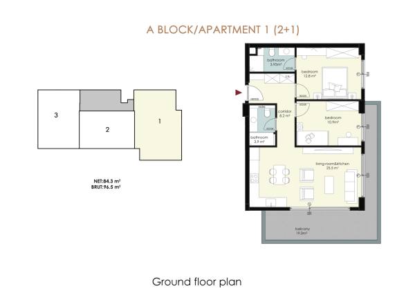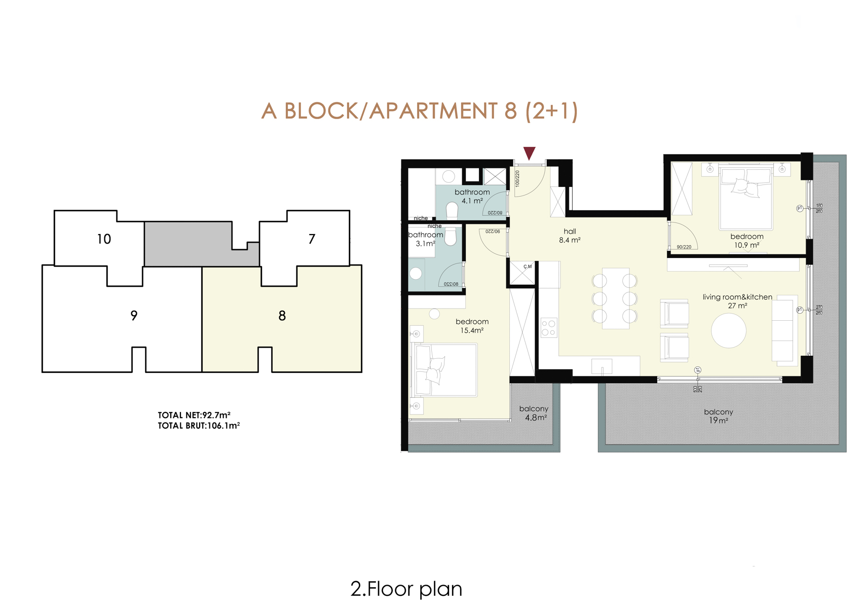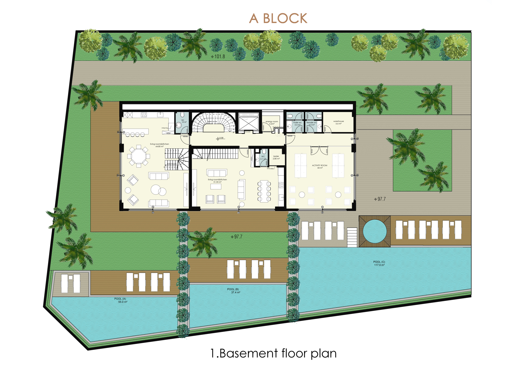Denize uzaklığı 1500m olan kompleks, 2.546 m2'lik arsada toplam 20 daireden oluşan 2 konut bloğundan oluşmaktadır. Konforlu bir yaşam ve keyifli bir tatil için ihtiyaç duyulabilecek her türlü sosyal altyapı planlanmıştır: açık yüzme havuzu, jakuzi, sauna, spor salonu, lobi, kafeterya, çocuk oyun odası, açık otopark bilardo ve vb.