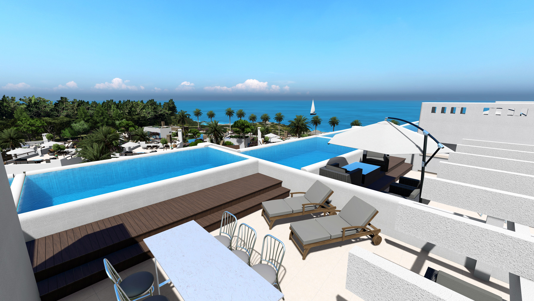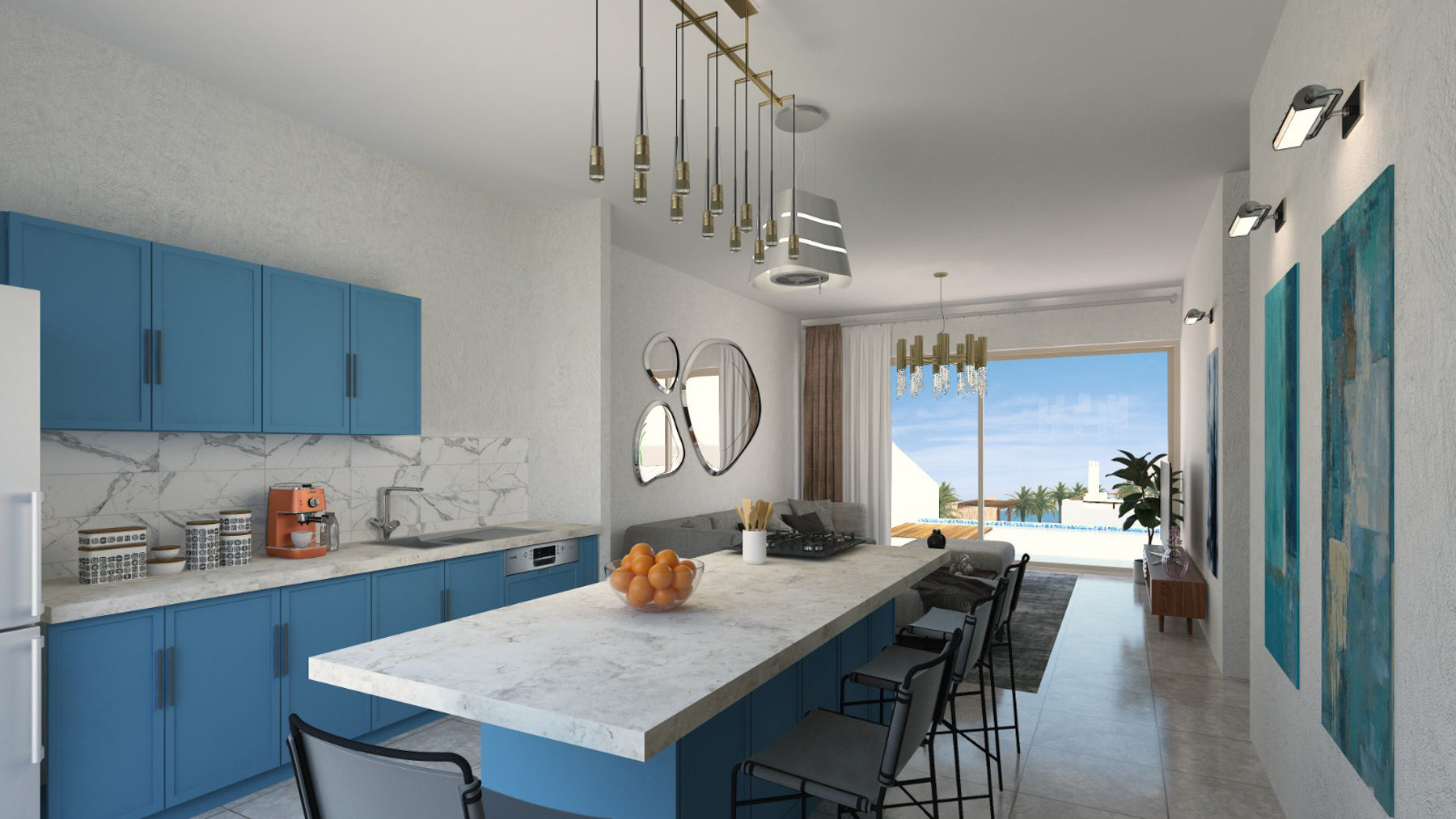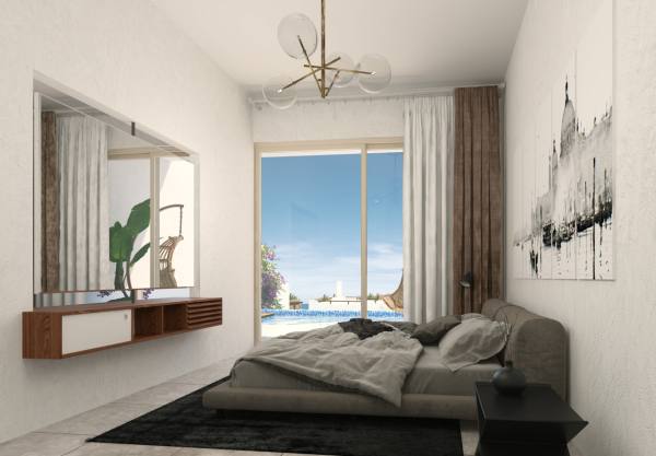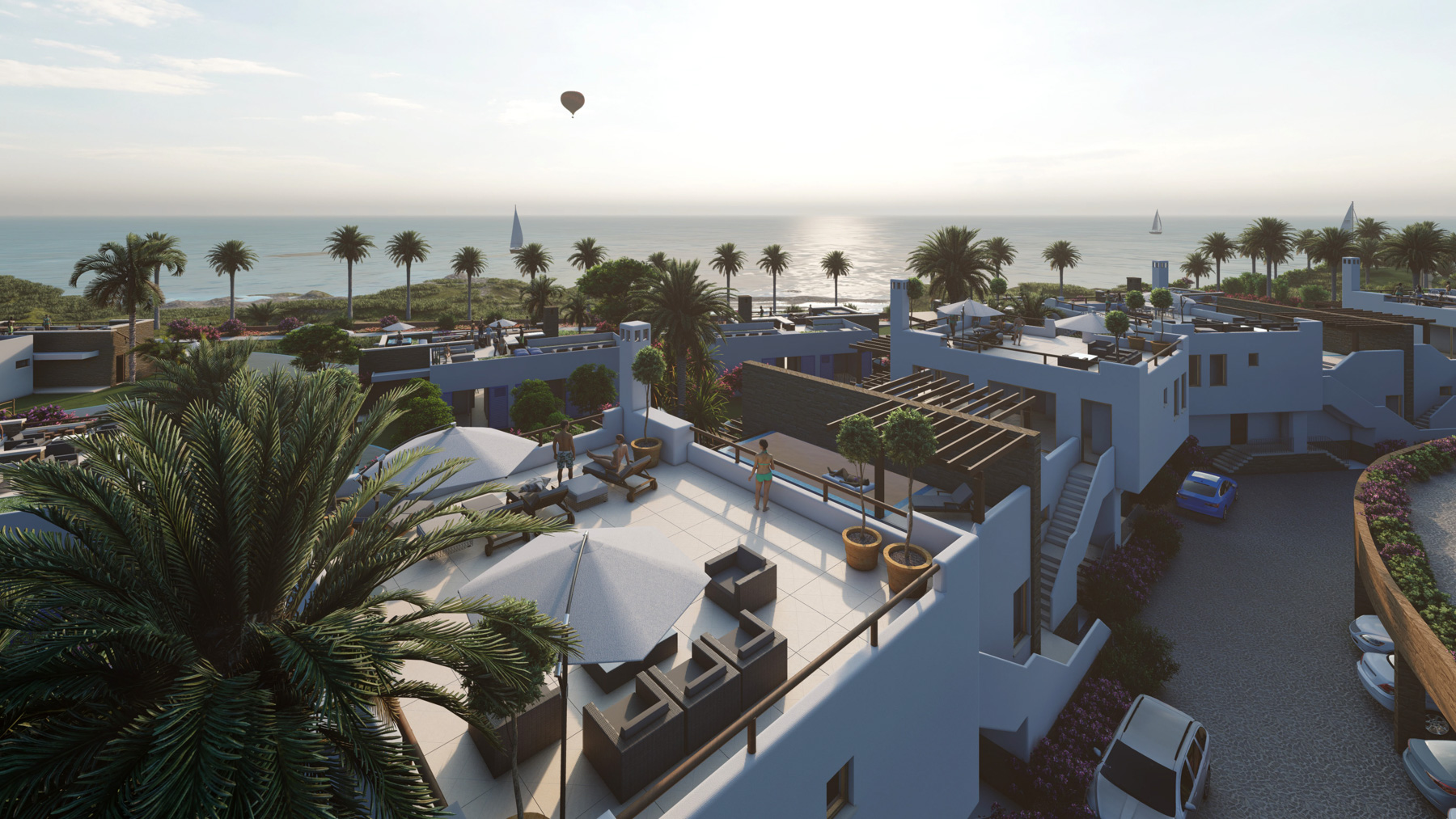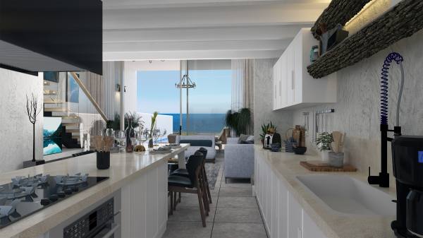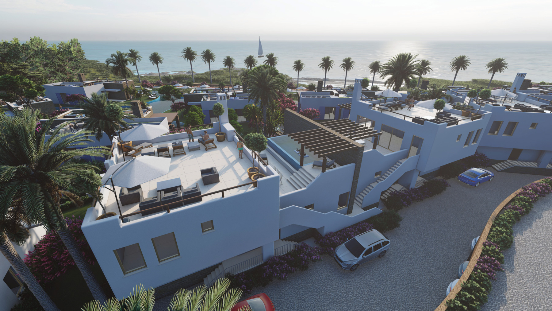 Yunan tarzı mimari tasarımı ile komplekste şık bir tatil beldesi havası yaratılmıştır. 8 adet 3+1 villa ve 72 adet 1+1, 2+1 ve 3+1 düzeninde daire bulunmaktadır. Çatıda çatı havuzu, sonsuzluk havuzu, barbekü alanı ve jakuzili çatı katları bulunmaktadır. Villalar ortak ve özel havuzlu olmak üzere 2 tipe ayrılmıştır. Ortak havuzlu villaların kendilerine ait küçük bir koyları bulunmaktadır. Villaların alt katlarında jakuzi bulunmaktadır.