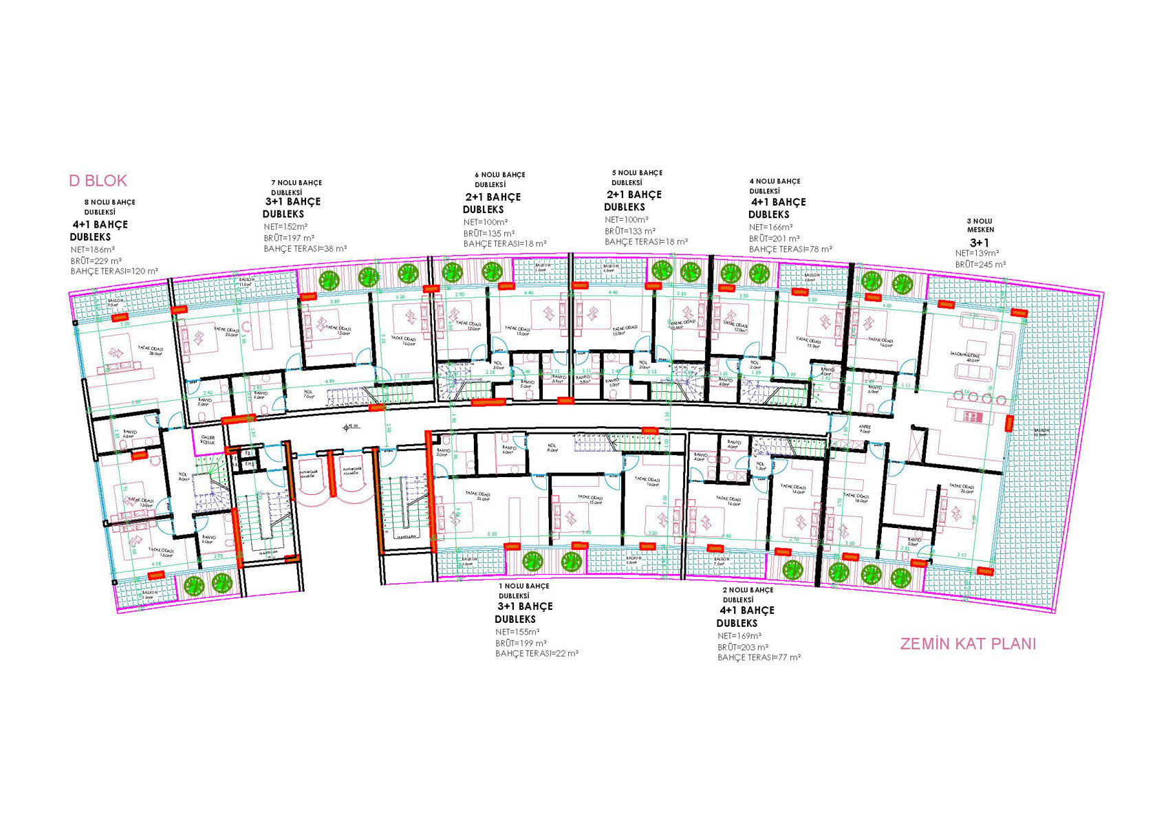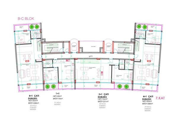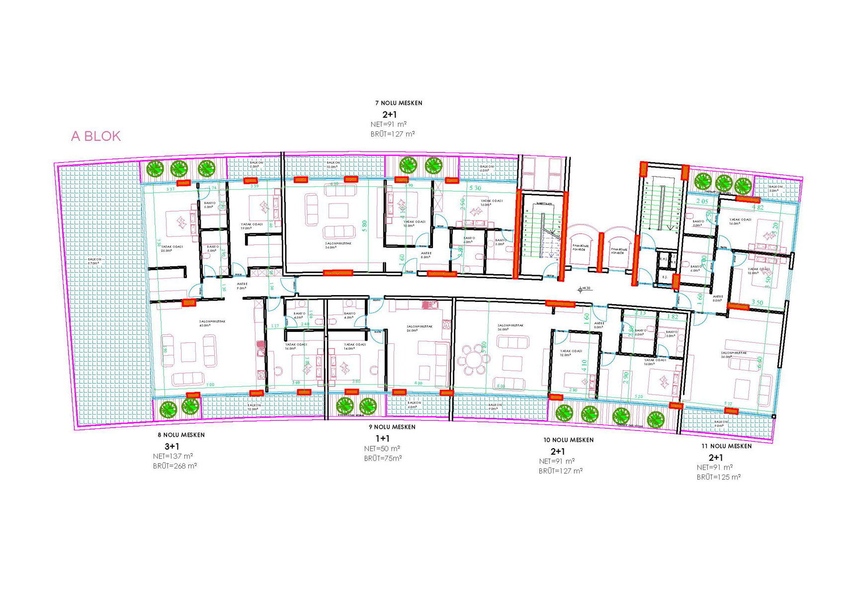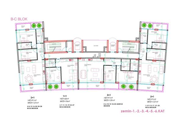 Komplekste farklı düzenlerde toplam 138 daire bulunmaktadır. Her daire için depo odaları bulunmaktadır. Tüm daireler kaliteli yalıtım, tam donanımlı banyo ve mutfak dolapları ile teslim edilecektir. Ayrıca tüm dairelerde tam elektrikli yerden ısıtma ve akıllı ev sistemi kurulacaktır.