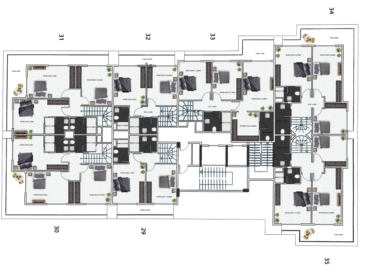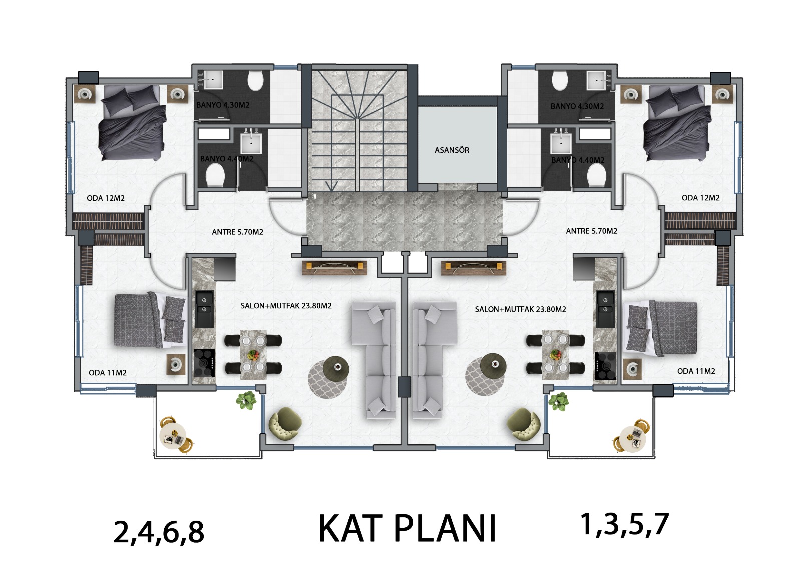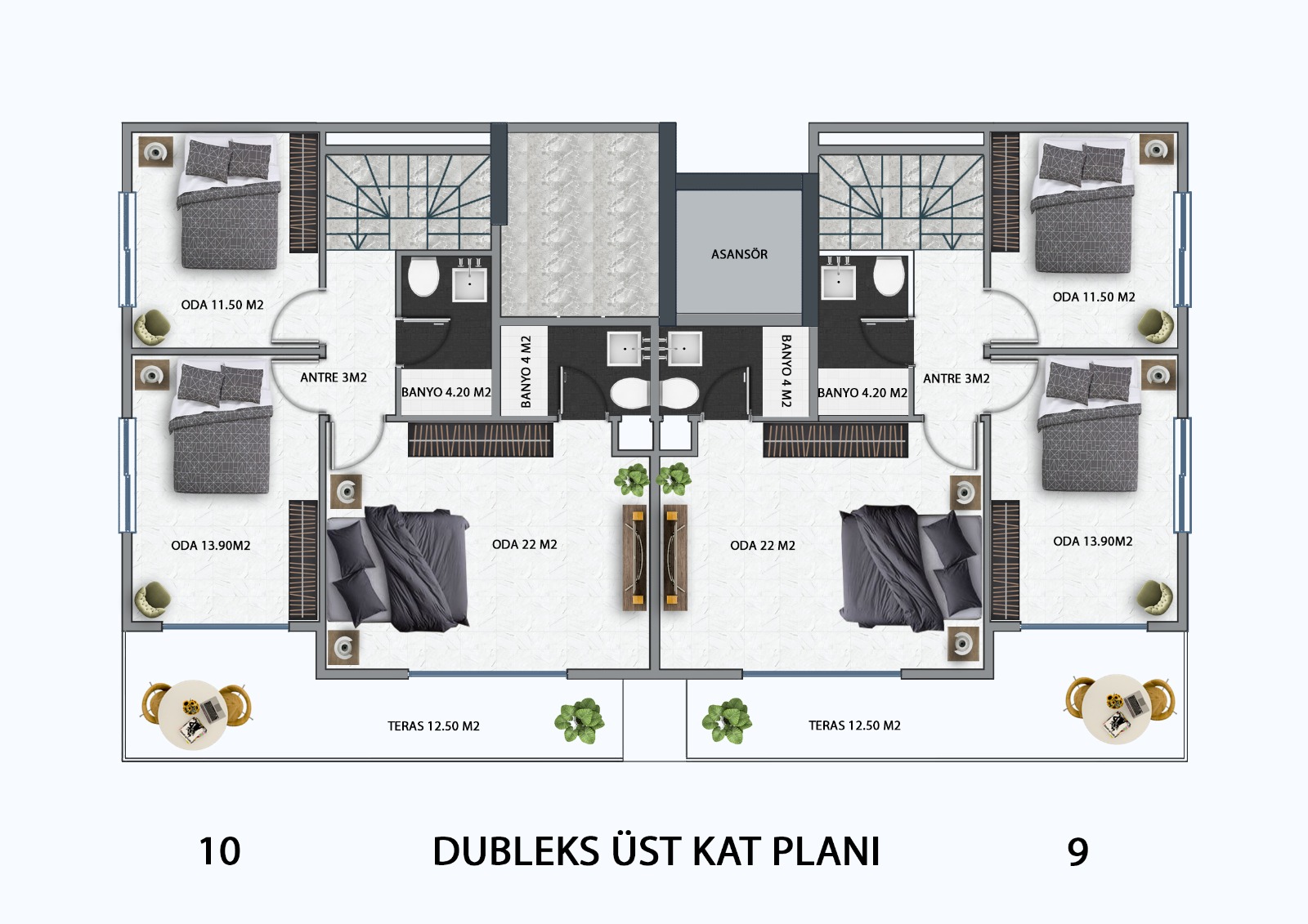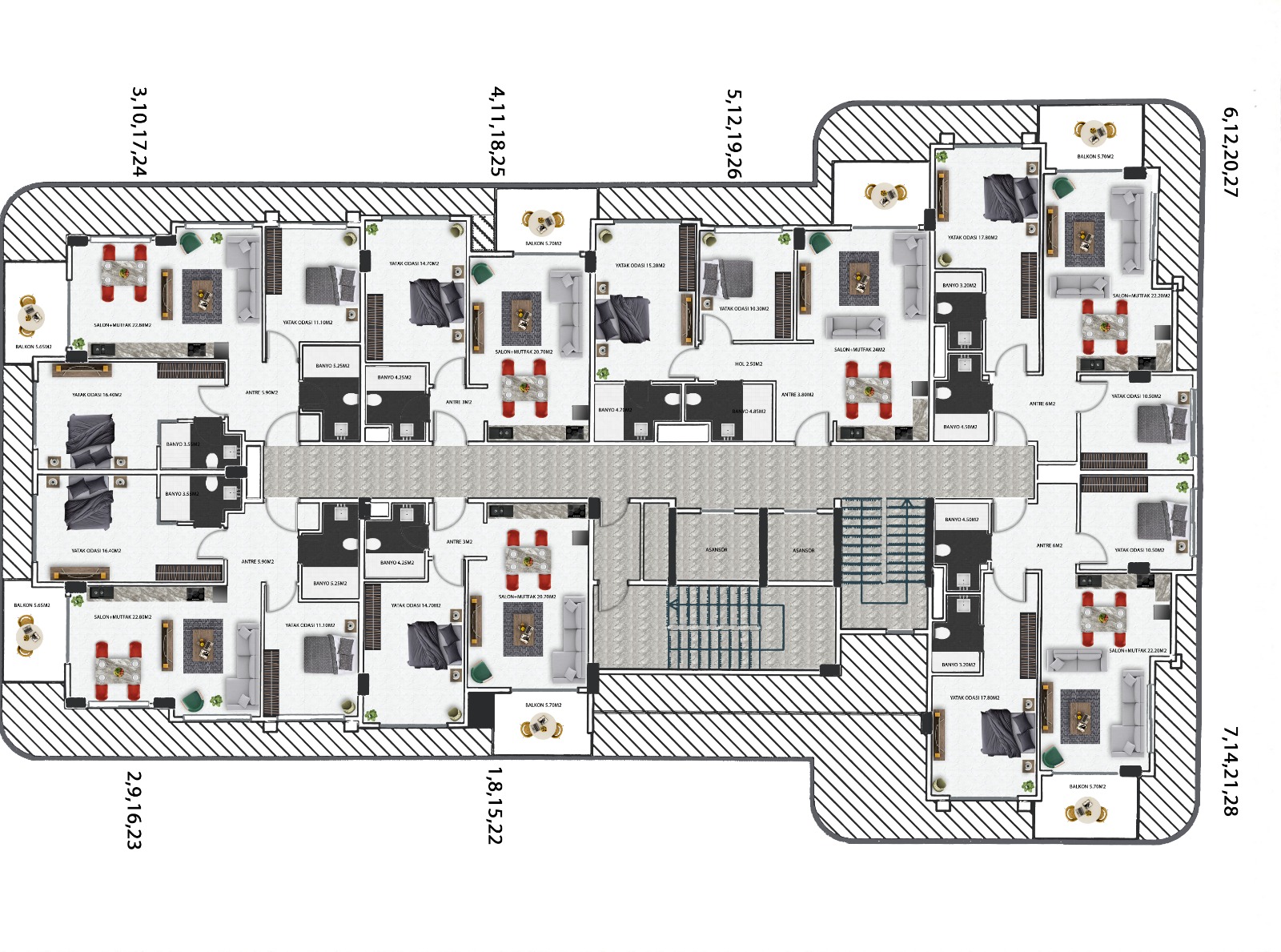 Tüm yıl boyunca güneşin keyfini sürebileceğiniz bu daireler Alanya'da yaşamanın en konforlu halini sunmaktadır.
