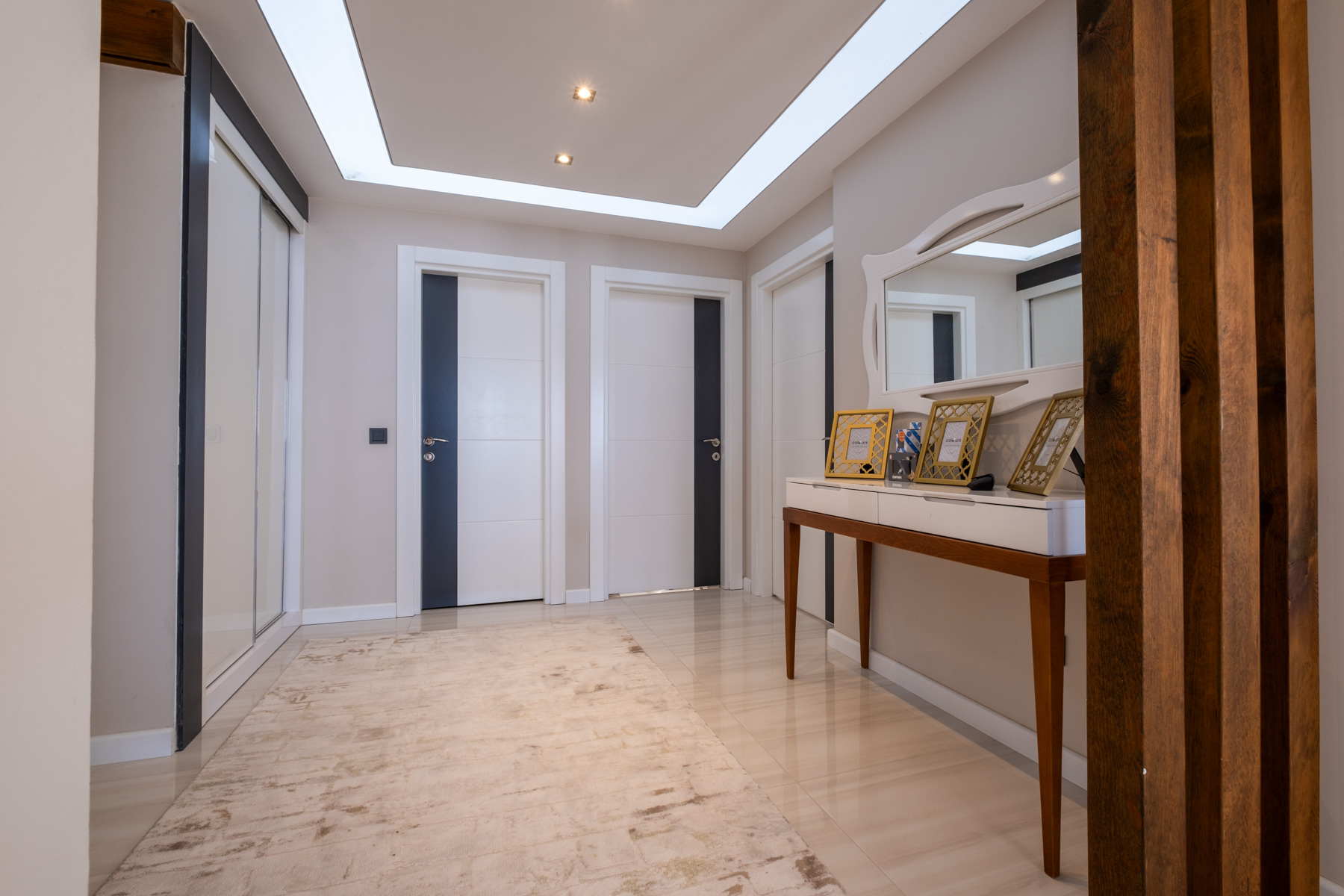 110 m2'lik daire açık mutfaklı bir oturma odası, iki yatak odası, iki banyo ve geniş bir koridordan oluşmaktadır. Daire taşınmaya hazır, tamamen mobilyalı ve yüksek kaliteli ev aletleri ile donatılmıştır.