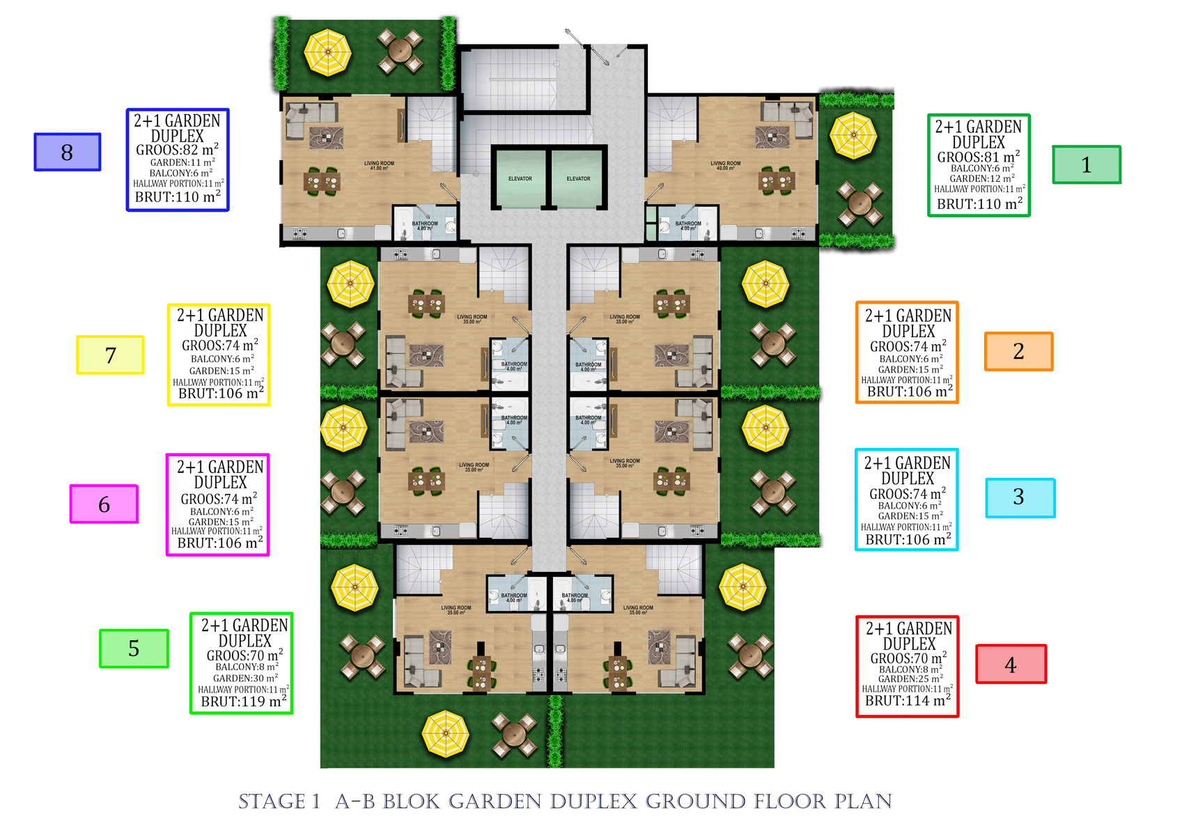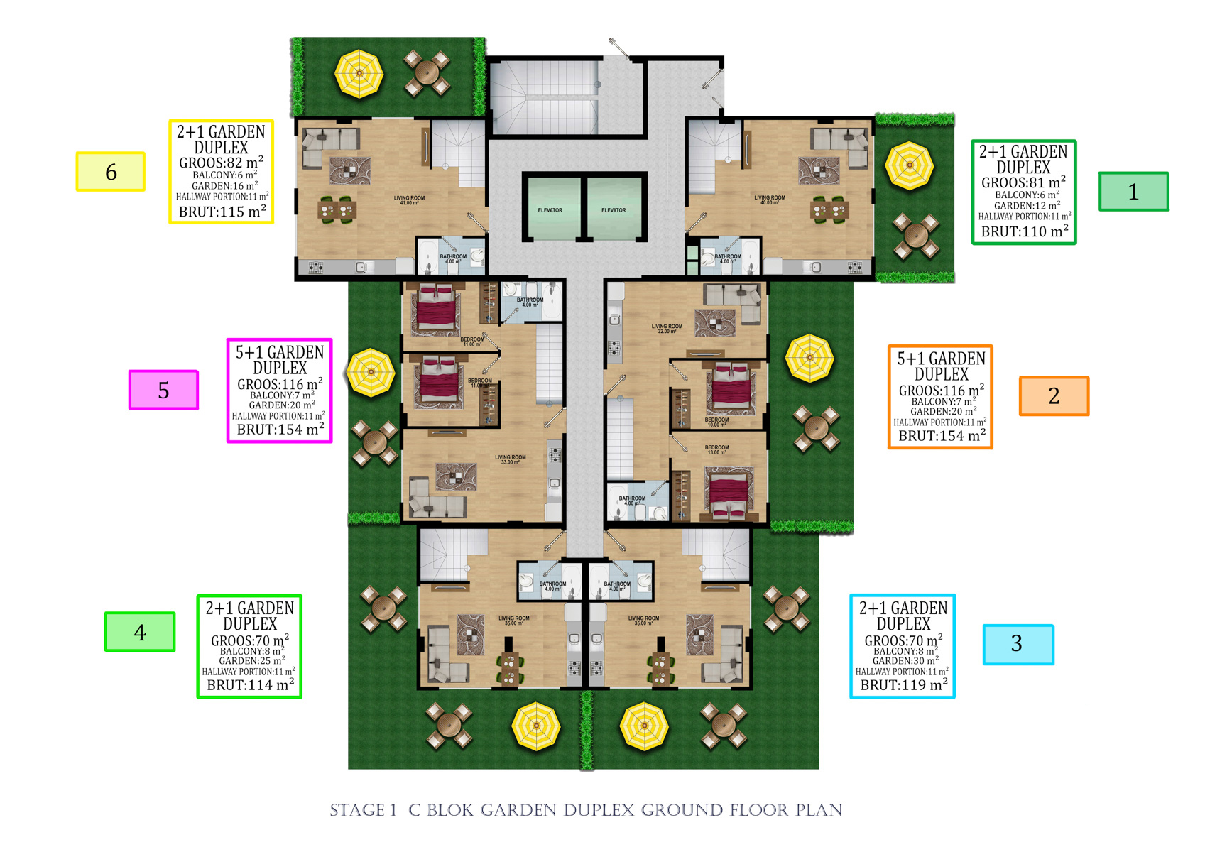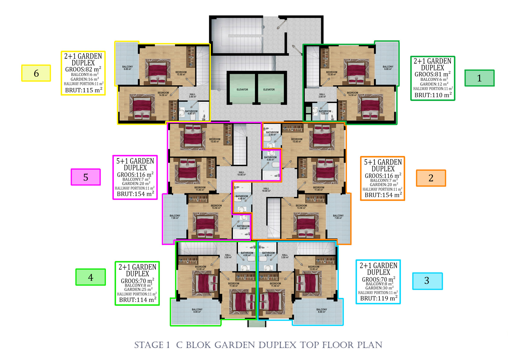 Kompleks 24.000 metrekarelik bir alanda 324 daireli 6 bloktan oluşmaktadır. 1+1, 2+1,  2+1 ve 5+1 bahçeli dubleksler,  2+1, 3+1, 4+1 Penthouselar bulunmaktadır.