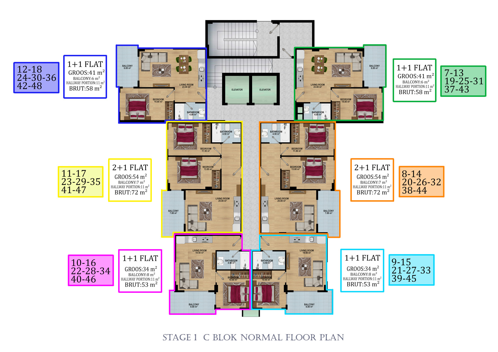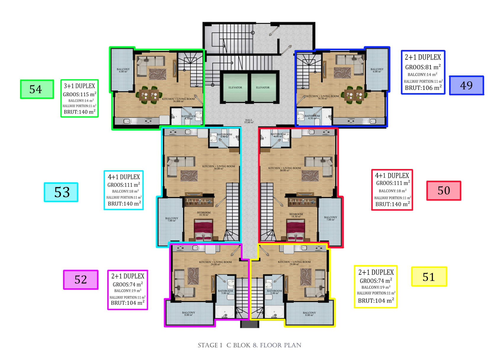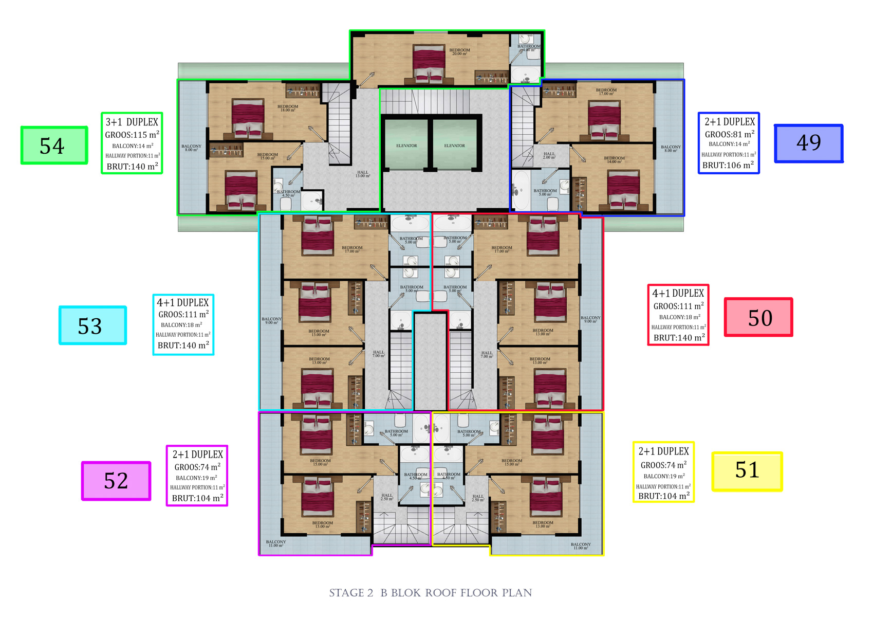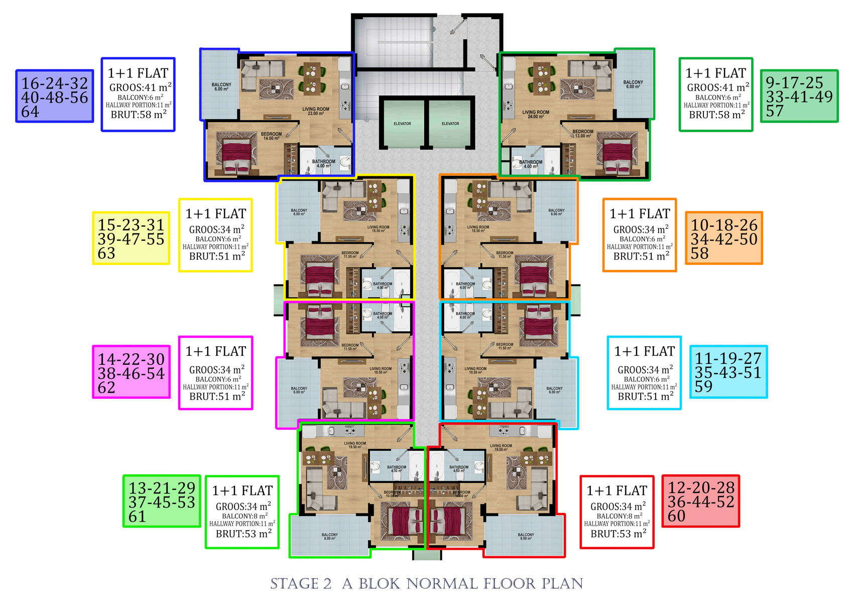 Kompleks 24.000 metrekarelik bir alanda 324 daireli 6 bloktan oluşmaktadır. 1+1, 2+1,  2+1 ve 5+1 bahçeli dubleksler,  2+1, 3+1, 4+1 Penthouselar bulunmaktadır.