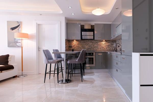 Alanya'nın popüler Konaklı bölgesinde yer alan bu lüks daire, geniş bir sosyal altyapıya sahip modern bir komplekste bulunmaktadır. Kompleks, çeşitli konut blokları ve özel villalardan oluşmakta olup, dairenin konumundan deniz ve kompleksin sosyal olanaklarına bakış sunmaktadır.