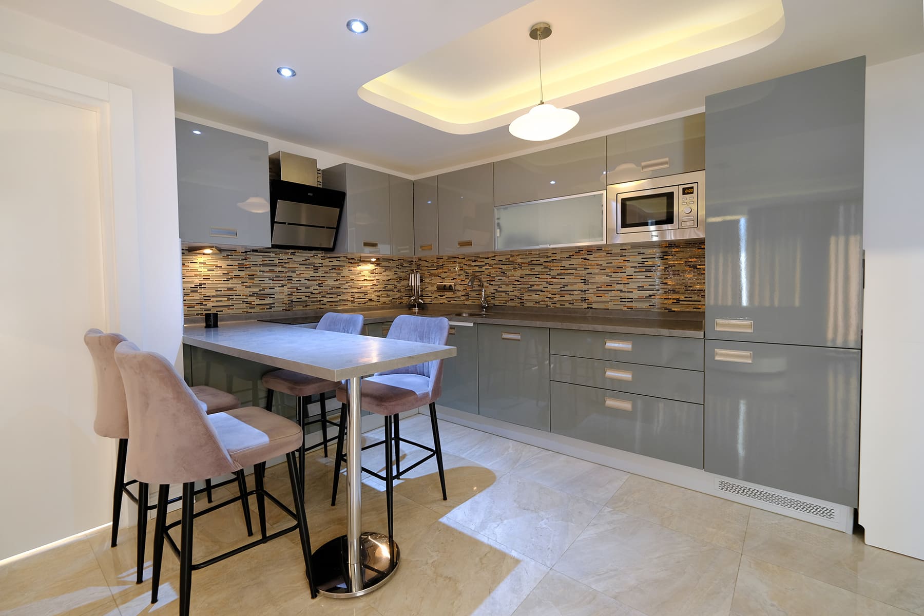2+1 daire, açık mutfaklı oturma odası, iki yatak odası, iki banyo ve geniş bir terasa sahiptir. Terasta yer alan jakuzi, deniz manzaralı bu keyifli alanda huzurlu vakit geçirmenize imkan tanır. Daire tamamen mobilyalı ve beyaz eşyalar dahil olmak üzere kusursuz bir şekilde satılmaktadır. Ayrıca, yerden ısıtma sistemi ve merkezi klima sistemi dairede yer almaktadır, bu da kış aylarında konforlu bir yaşam sağlar.