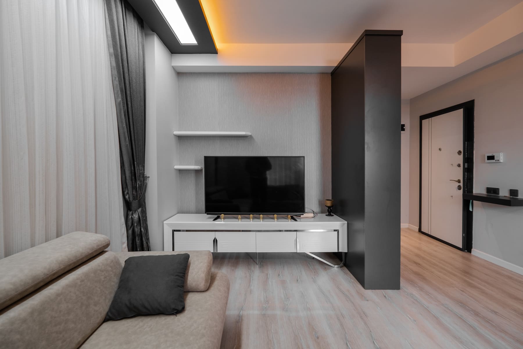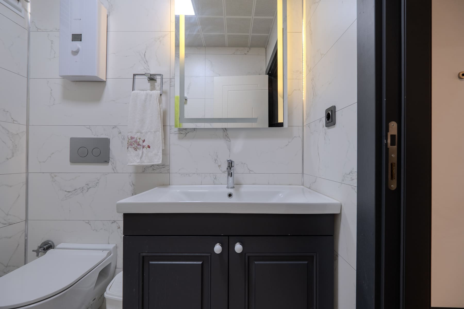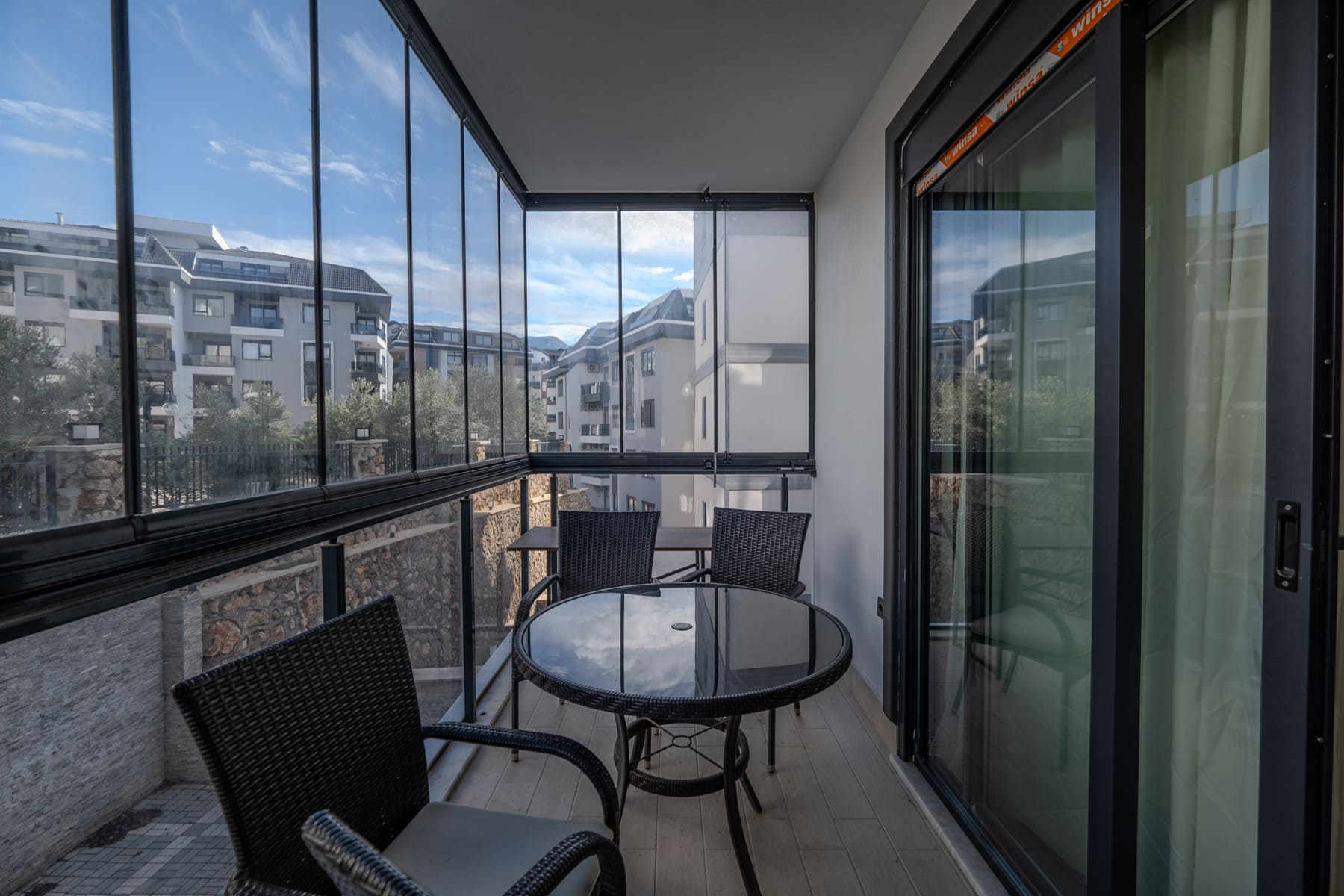 Daire eşyalı olup klima, TV ve gerekli beyaz eşyalar mevcuttur. Açık mutfaklı salon, 1 yatak odası ve balkon bulunmaktadır. Kullanımı rahat ve ferah bir dairedir.
