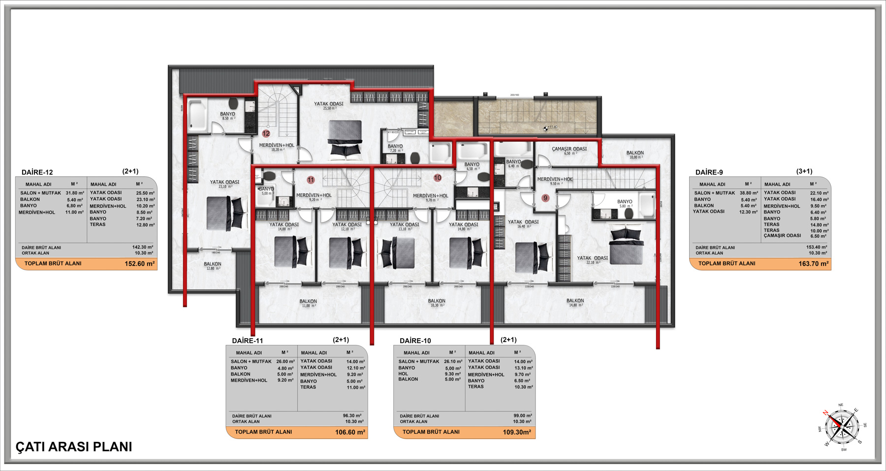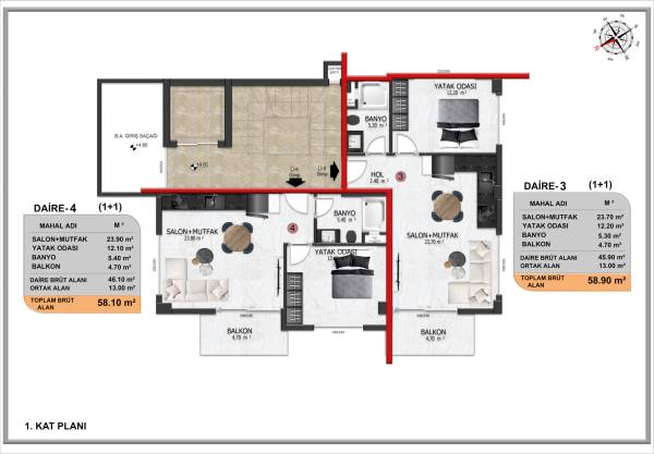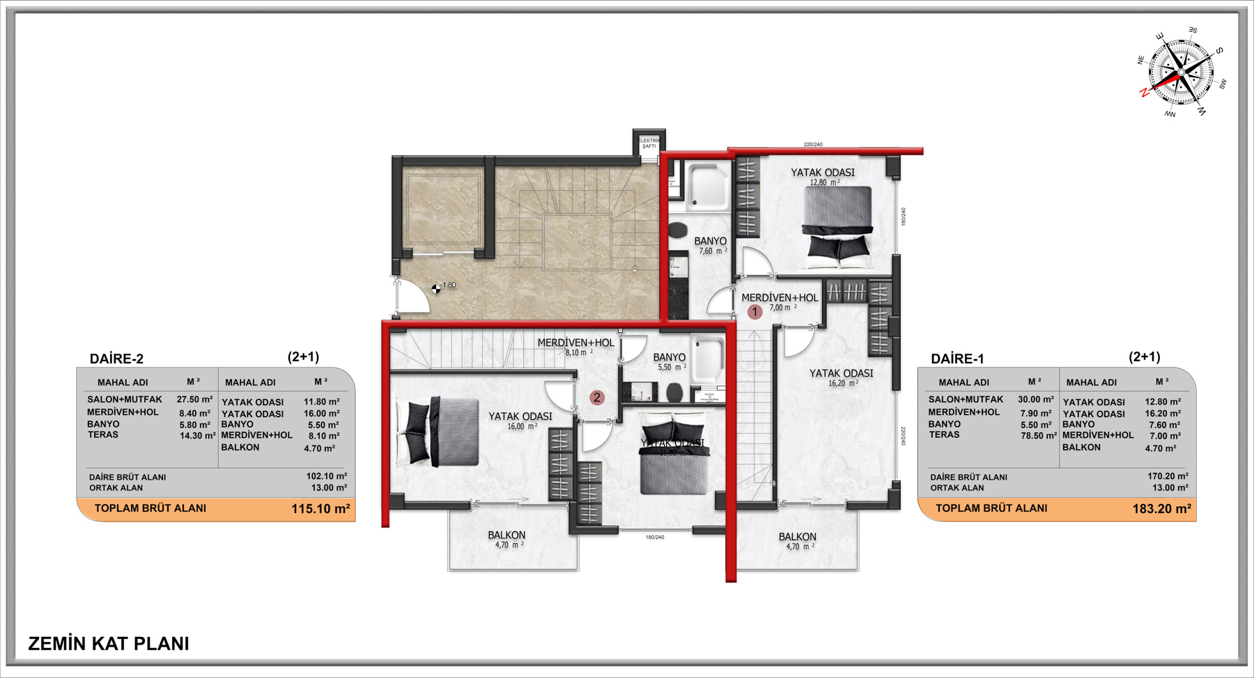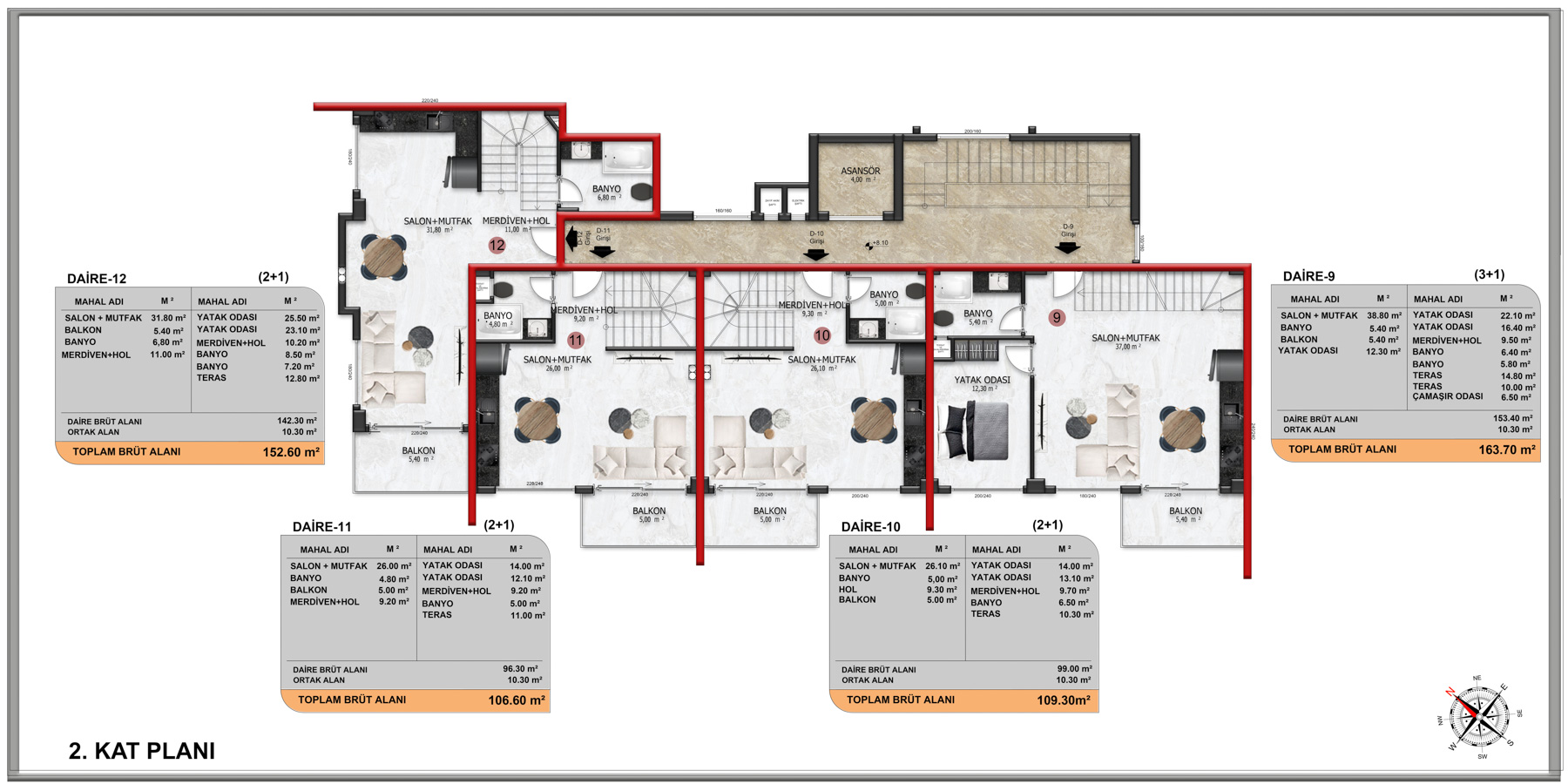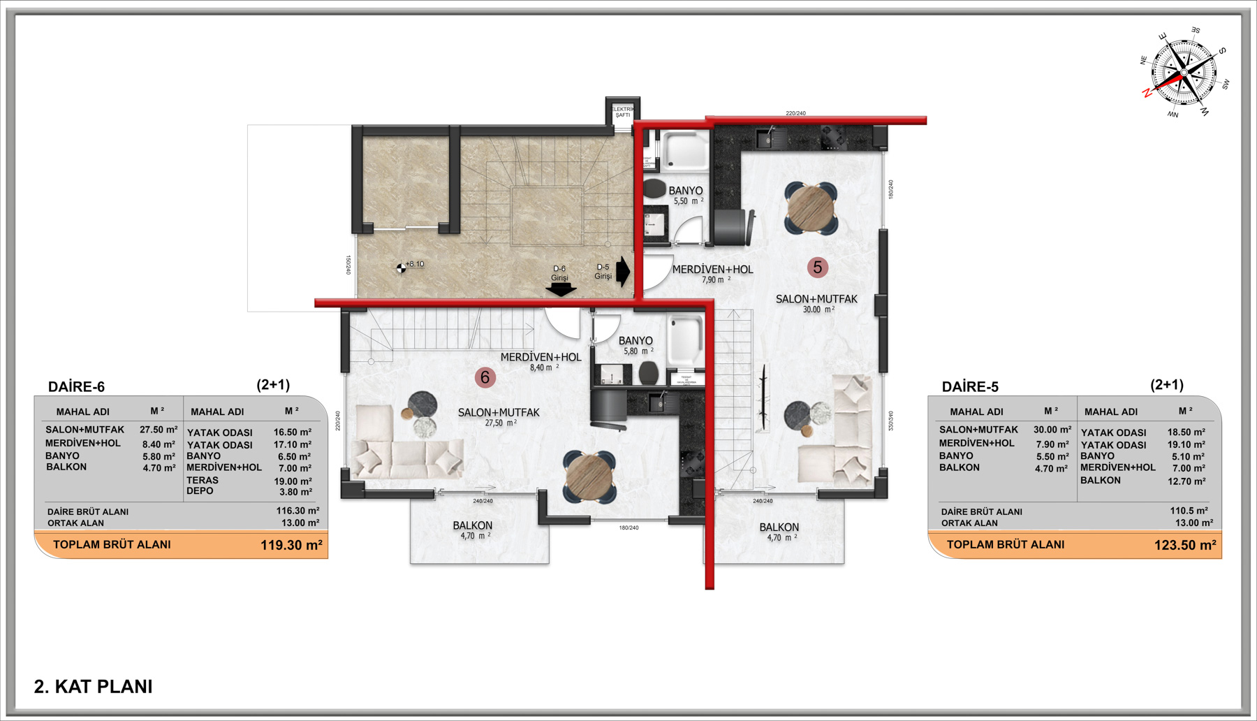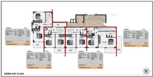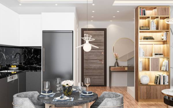 Квартиры будут сданы в чистовой отделке. В каждой квартире будут установлены стальные двери, напольное покрытие из гранита, глянцевые кухонные шкафы, гранитные столешницы, душевая кабина из закаленного стекла. Вам остается обставить квартиру по своему вкусу и наслаждаться жизнью или отдыхом в солнечной Алании.