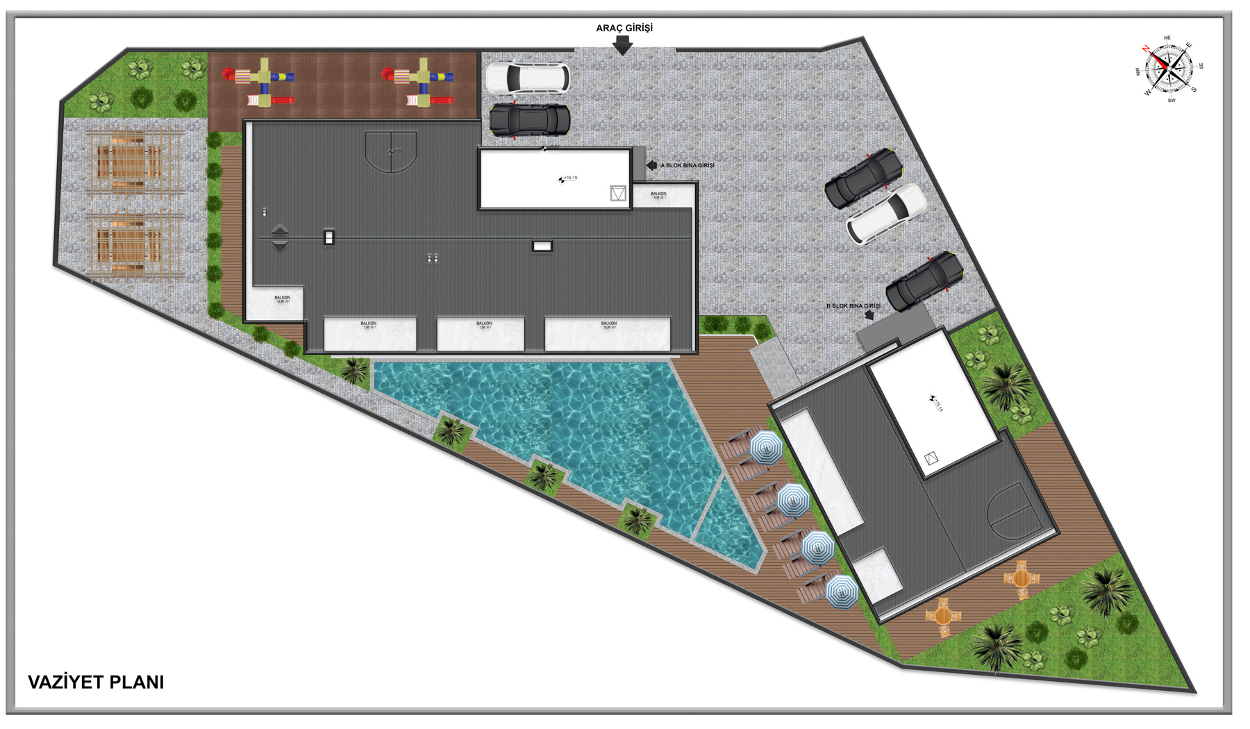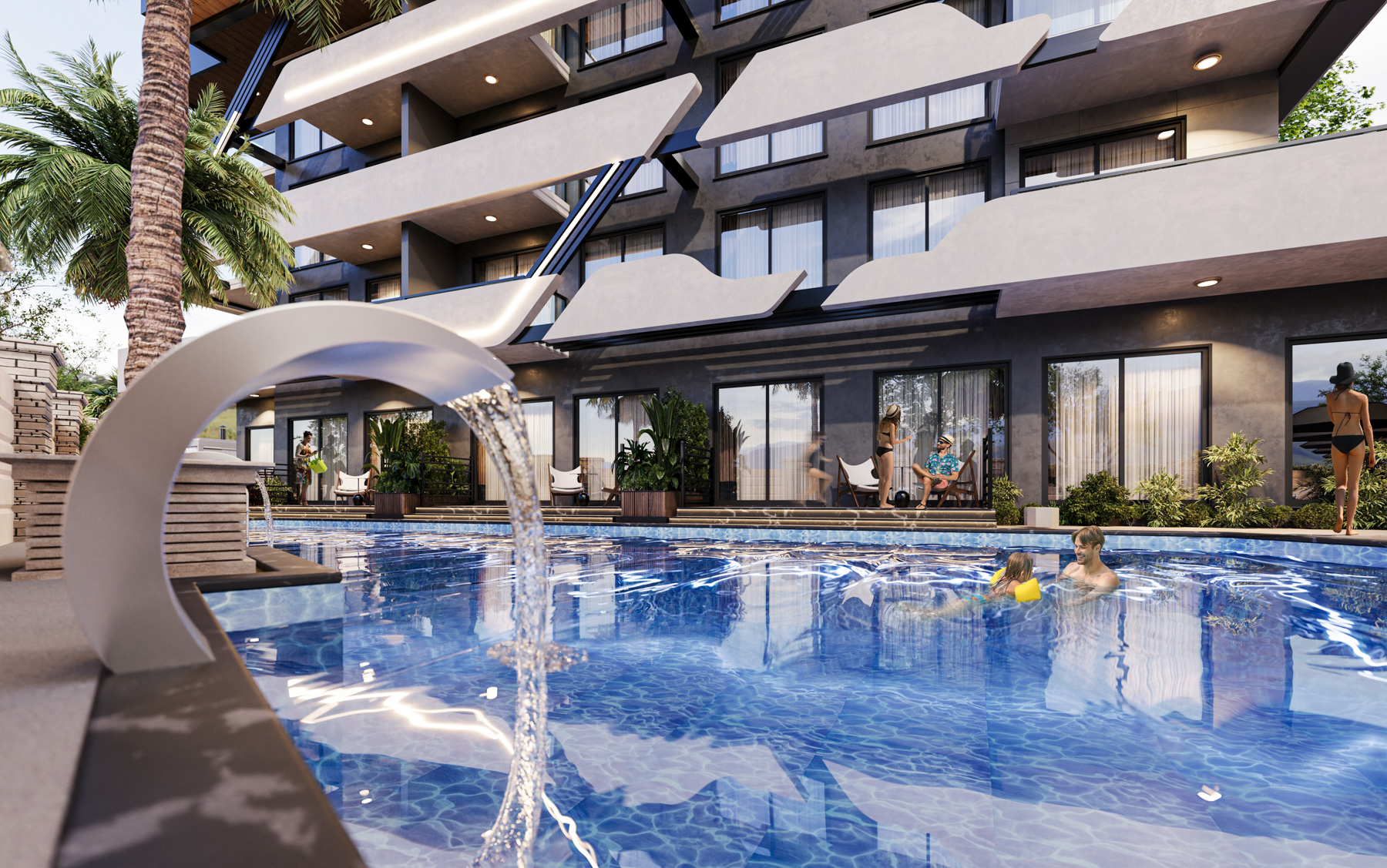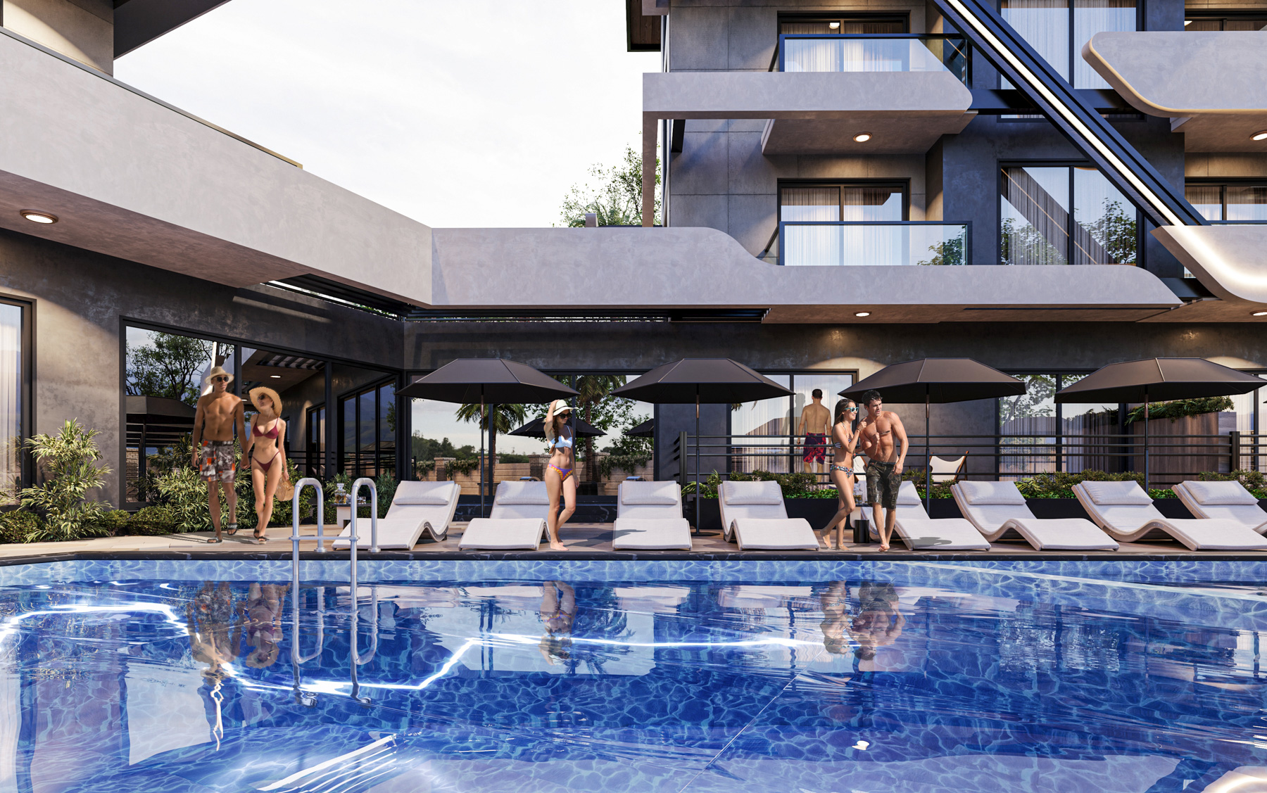 Территория комплекса имеет всю необходимую инфраструктуру для вашего комфортного отдыха и постоянного проживания. В комплексе имеется хорошие как открытые, так и закрытые социальные зоны для приятного времяпровождения жильцов. В вашем распоряжении открытый плавательный бассейн, детская игровая площадка, площадка для барбекю, фитнес зал, сауна, джакузи и другие удобства.