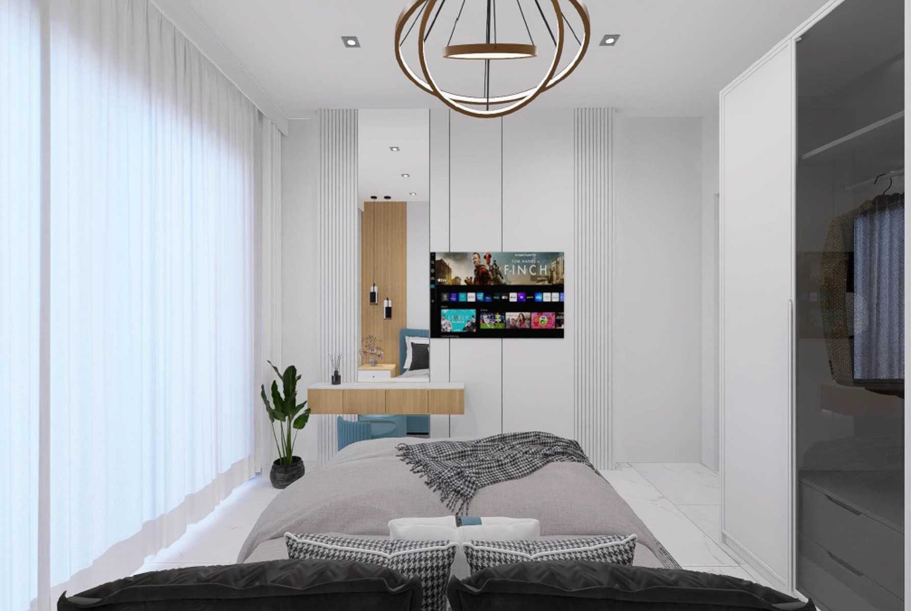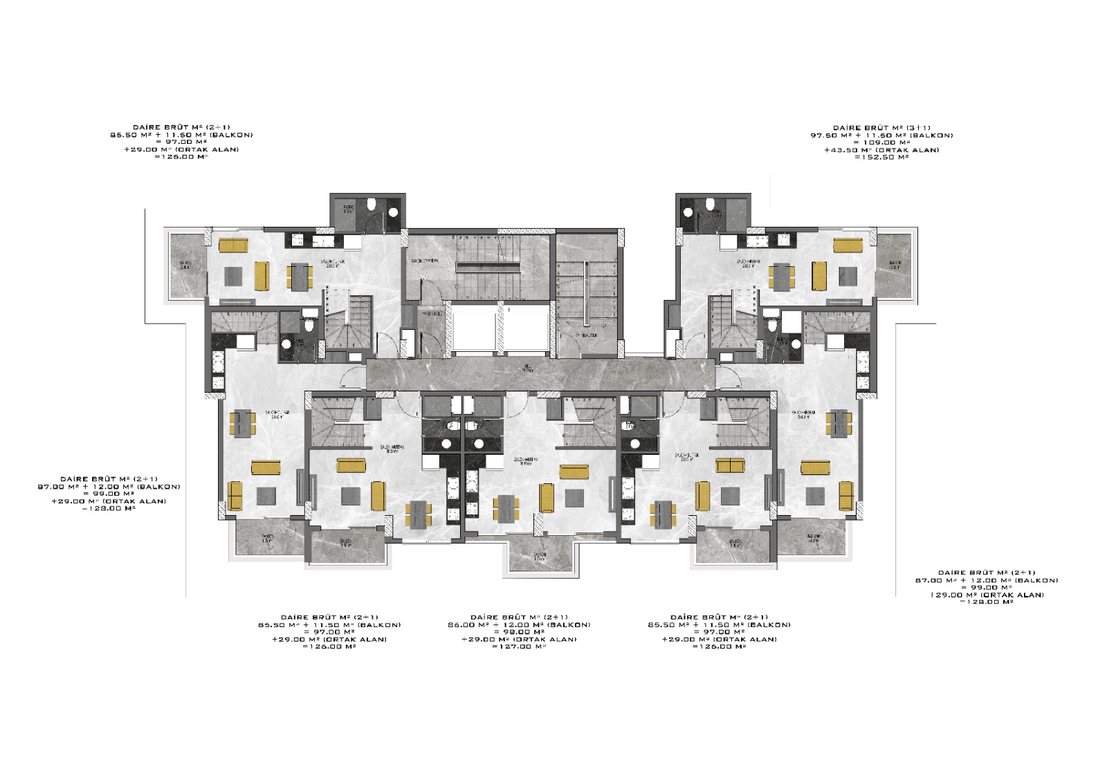 Проект совместил в себе удобное месторасположение, доступные цены и грамотные функциональные планировки квартир. Он расположен на площади 3557 кв.м. Это 10 этажное здание с лаконичным, стильным экстерьером, включающее 63 квартиры различных планировок: 1+1, пентхаусы 2+1 и 3+1. Квартиры сдаются с чистовой отделкой, встроенным кухонным гарнитуром и оборудованными сантехникой и шкафами санузлами.