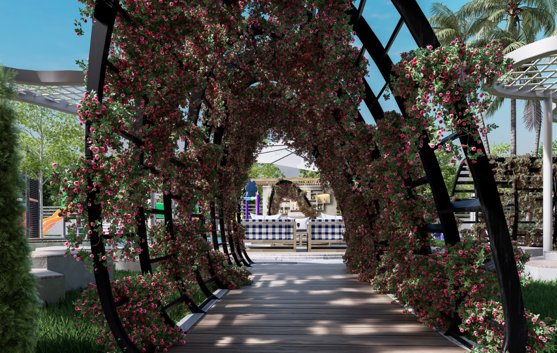На приватной территории площадью 8000 кв.м будет предусмотрена инфраструктура отельного типа. Зона будет благоустроена множеством зелёных насаждений и зон отдыха, открытым и детским бассейнами, а также баром у бассейна. В закрытую инфраструктуру войдут крытый бассейн, сауна, хаммам и фитнес-центр. Жилой комплекс также будет иметь собственный оборудованный пляж с баром.