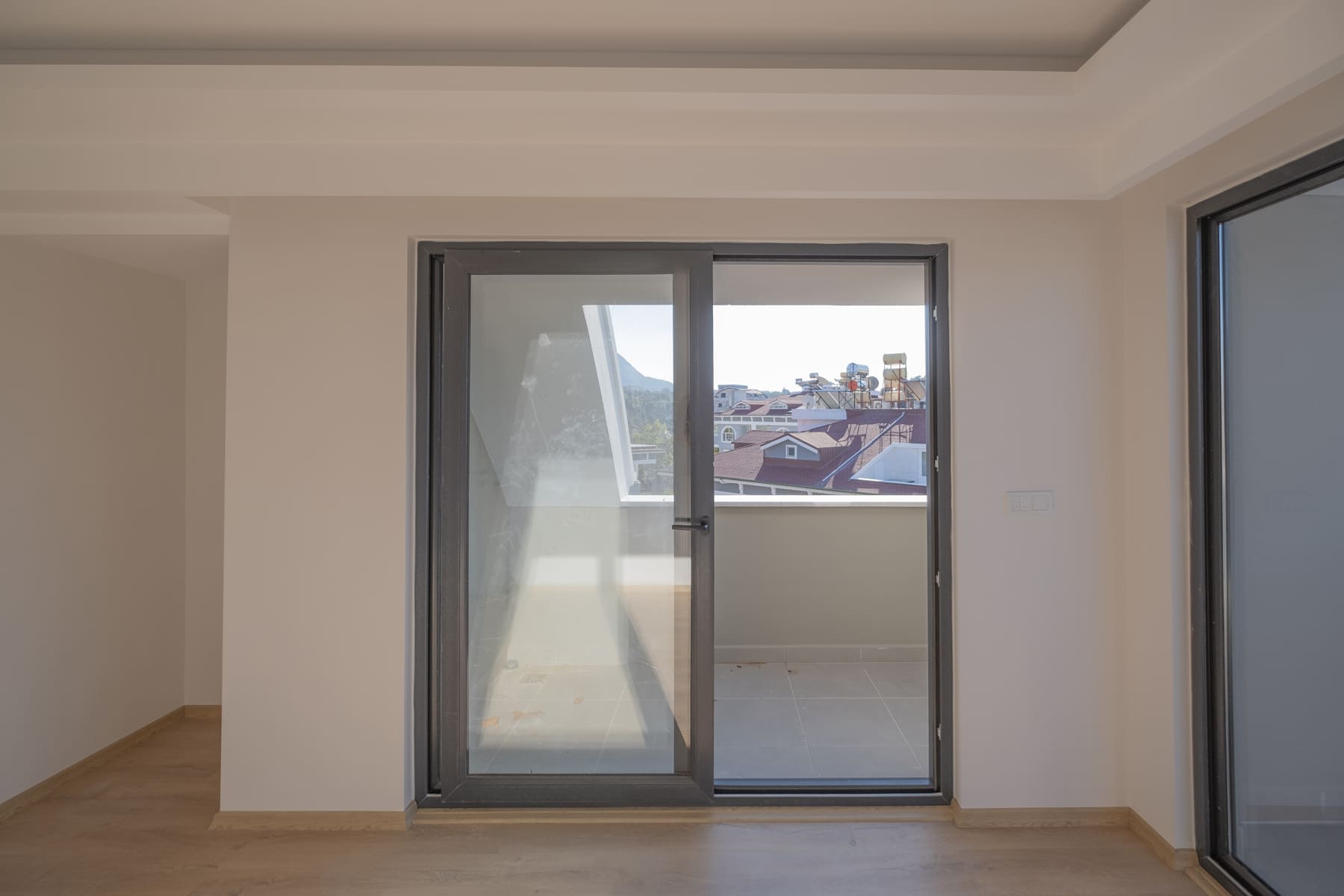 Окна квартиры выходят на Юг и западную сторону света. Балкон нижнего этажа выходит на южную сторону и вы сможете принимать на нем солнечные ванны и приятно проводить время на свежем воздухе круглый год.