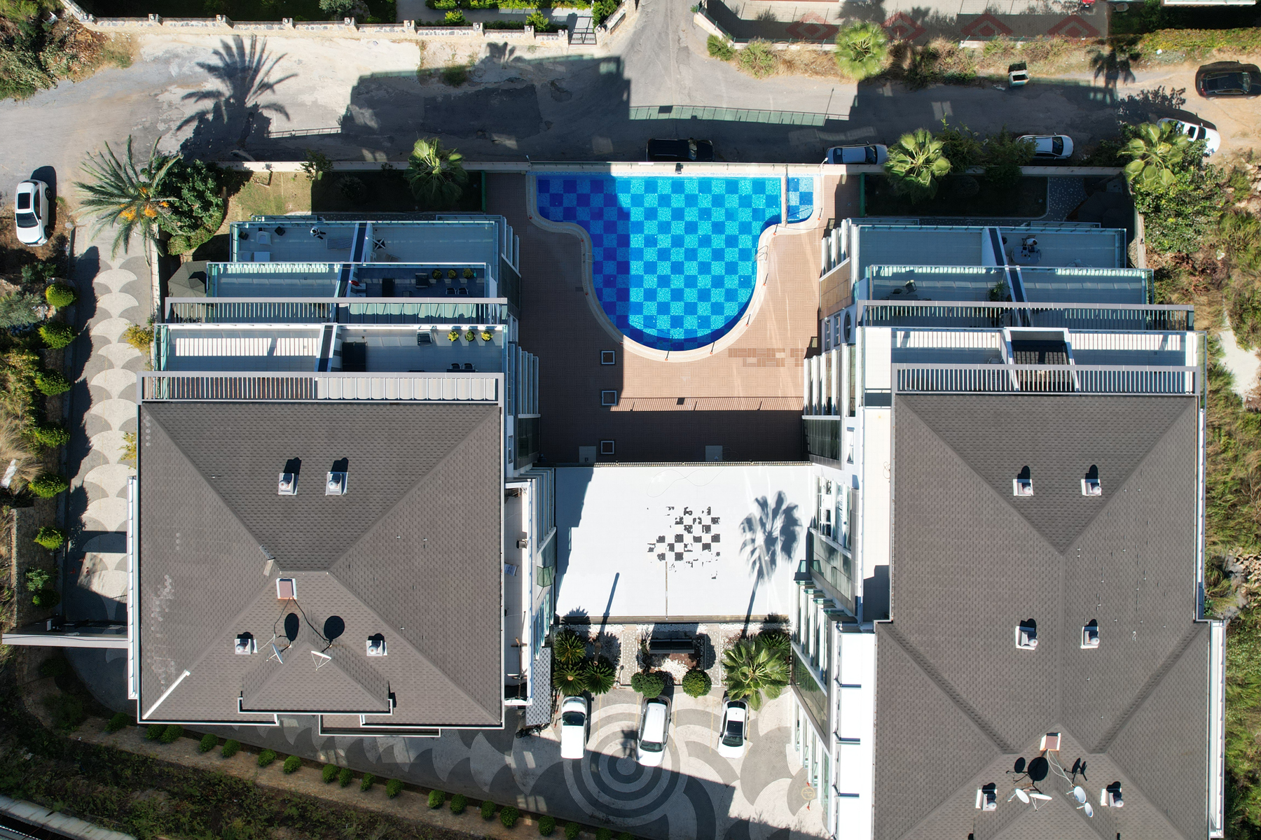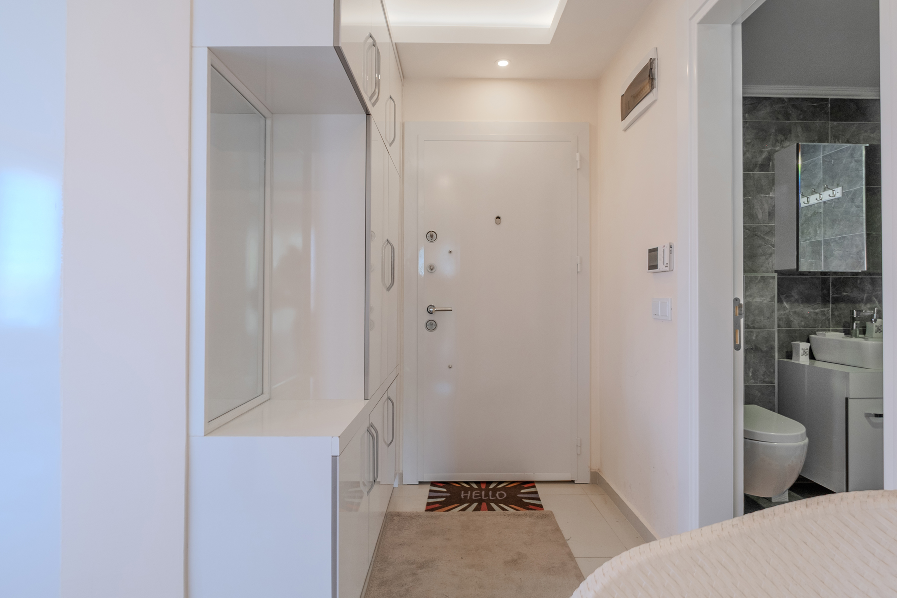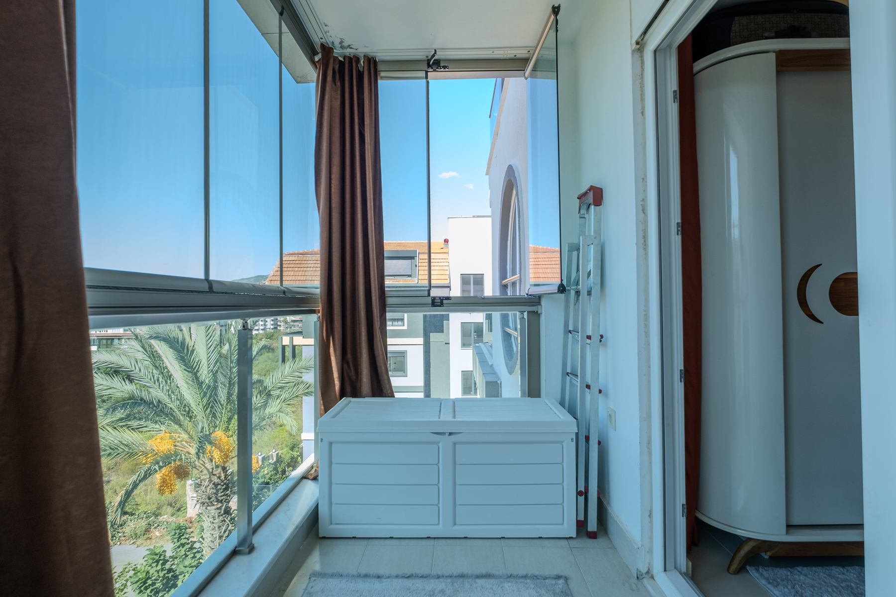 Главная изюминка квартиры — терраса площадью 30 м² с частичным видом на море. Это пространство можно использовать как зону отдыха, установить джакузи, создать зеленый уголок или уютное место для вечеров с бокалом вина.