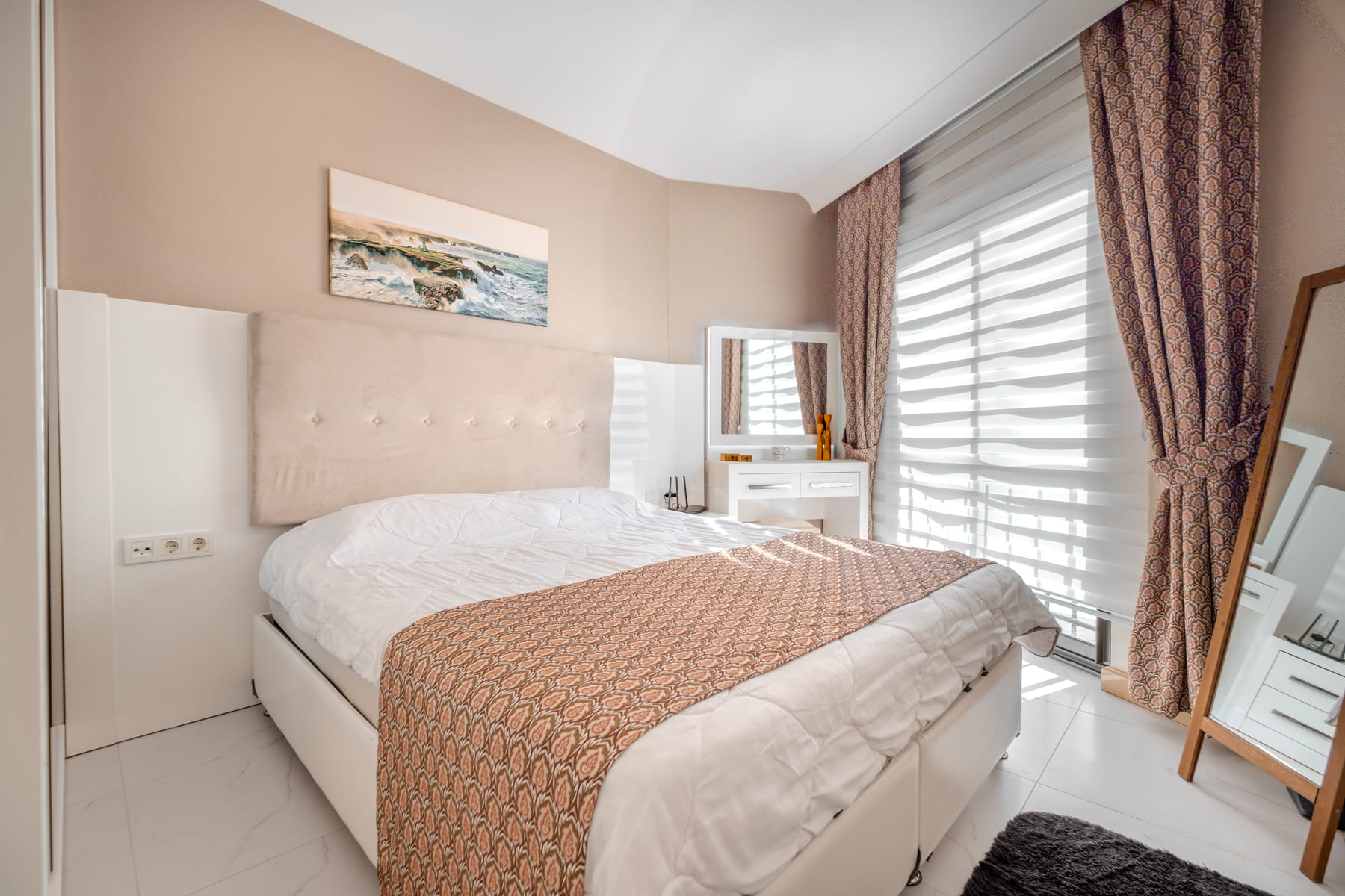 Квартира находится примерно в 800 метрах от пляжа Клеопатры и расположена в шаговой доступности от всех социальных объектов, таких как рынки, супермаркеты, кафе, рестораны, рыбный рынок, парикмахерские и аптеки.